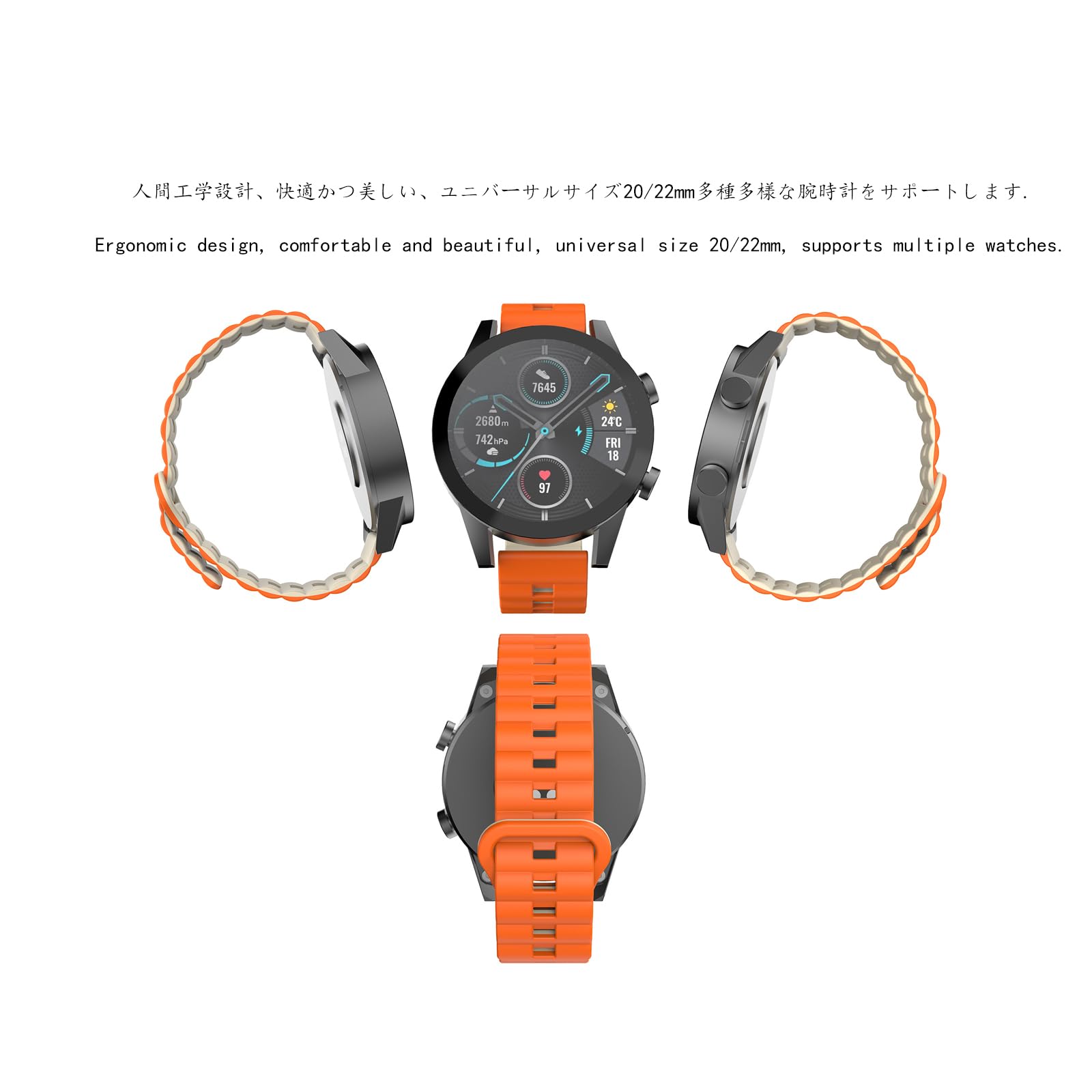 [YSuqiBB] 時計バンド20mm 22mm 上質二色シリコンマグネットベルト、無感装着、柔軟快適、防水通気、工具不要、ワンタッチ取付