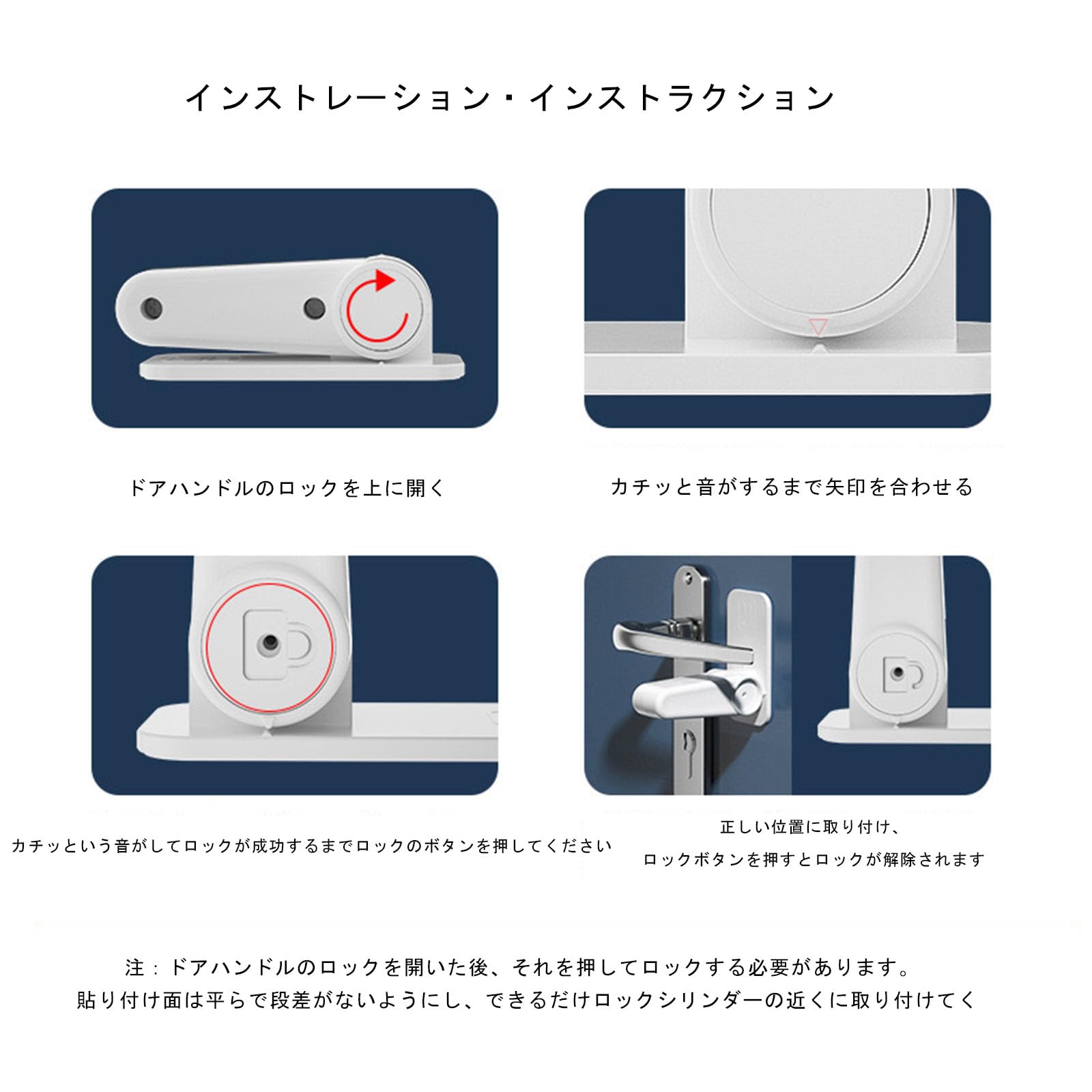 子供の安全を守る: 180°回転するドアノブロックは、お子様がドアノブを回して外に出るのを防ぎます。