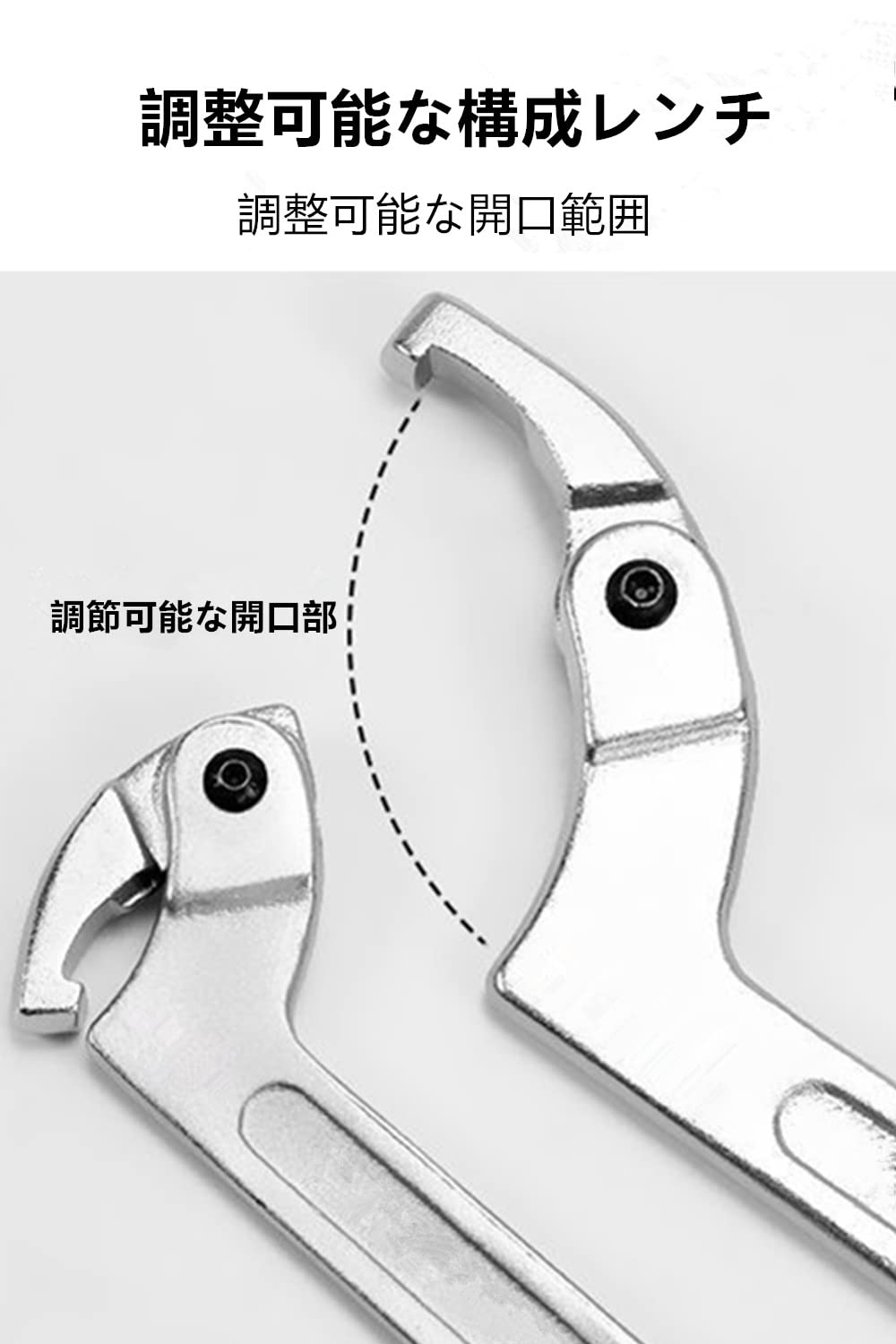 フックレンチ 車高調レンチ 多機能調節可能 ロックナットレンチ 修理ツール 月形レンチ