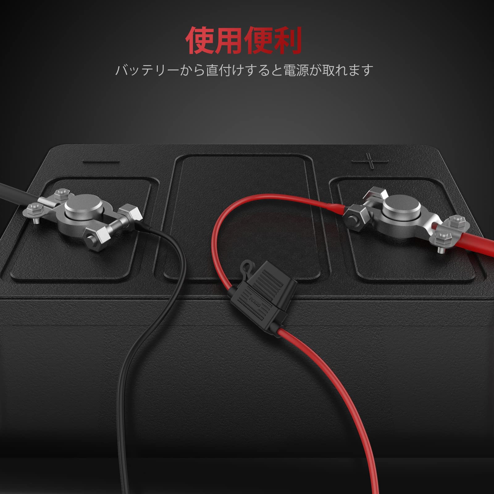 ヒューズ付き シガーソケット延長ケーブル 車両延長コード バッテリーから電源を取るのに便利 1.8M 絶縁性よく&耐熱&腐蝕耐え 安全安心使用 (丸端子コード)