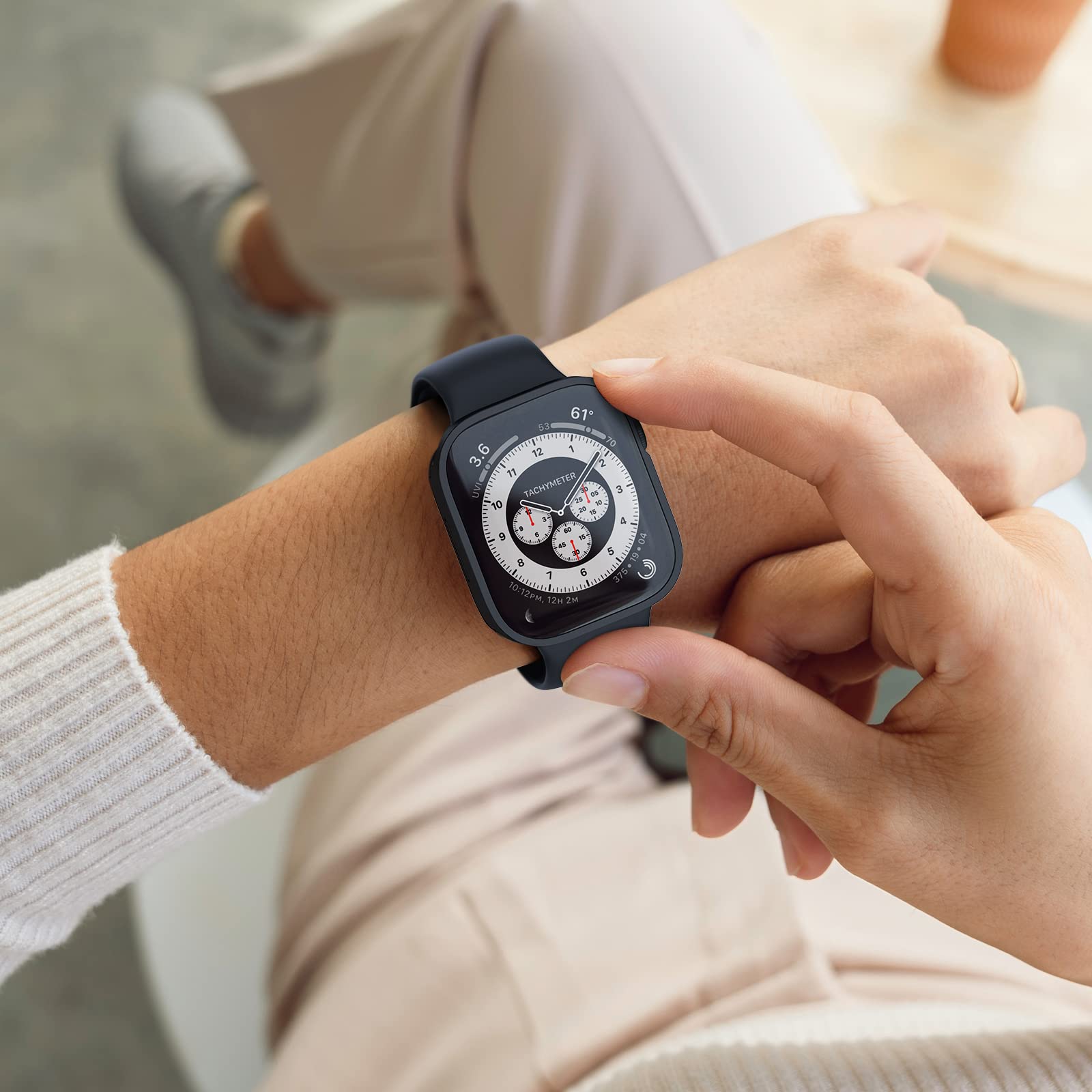 【特価処分】【フルカバー保護】Kawoco アップルウォッチ 防水 カバー Apple Watch SE Series 9 8 7 対応 45mm ケース 2 in 1 前後の保護 二重構造 耐衝撃 iWatch 一体型 ケース 45mm ミッドナイト