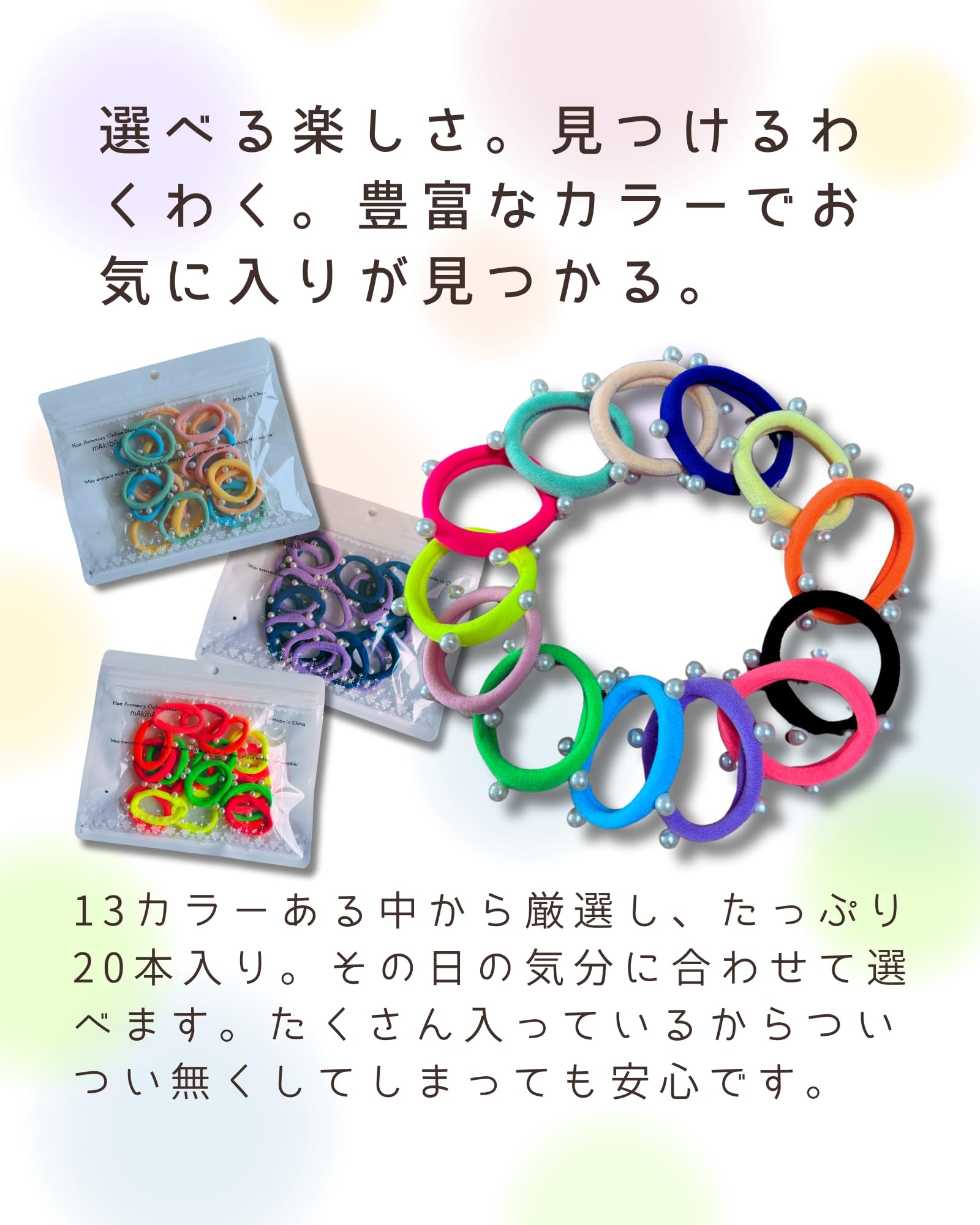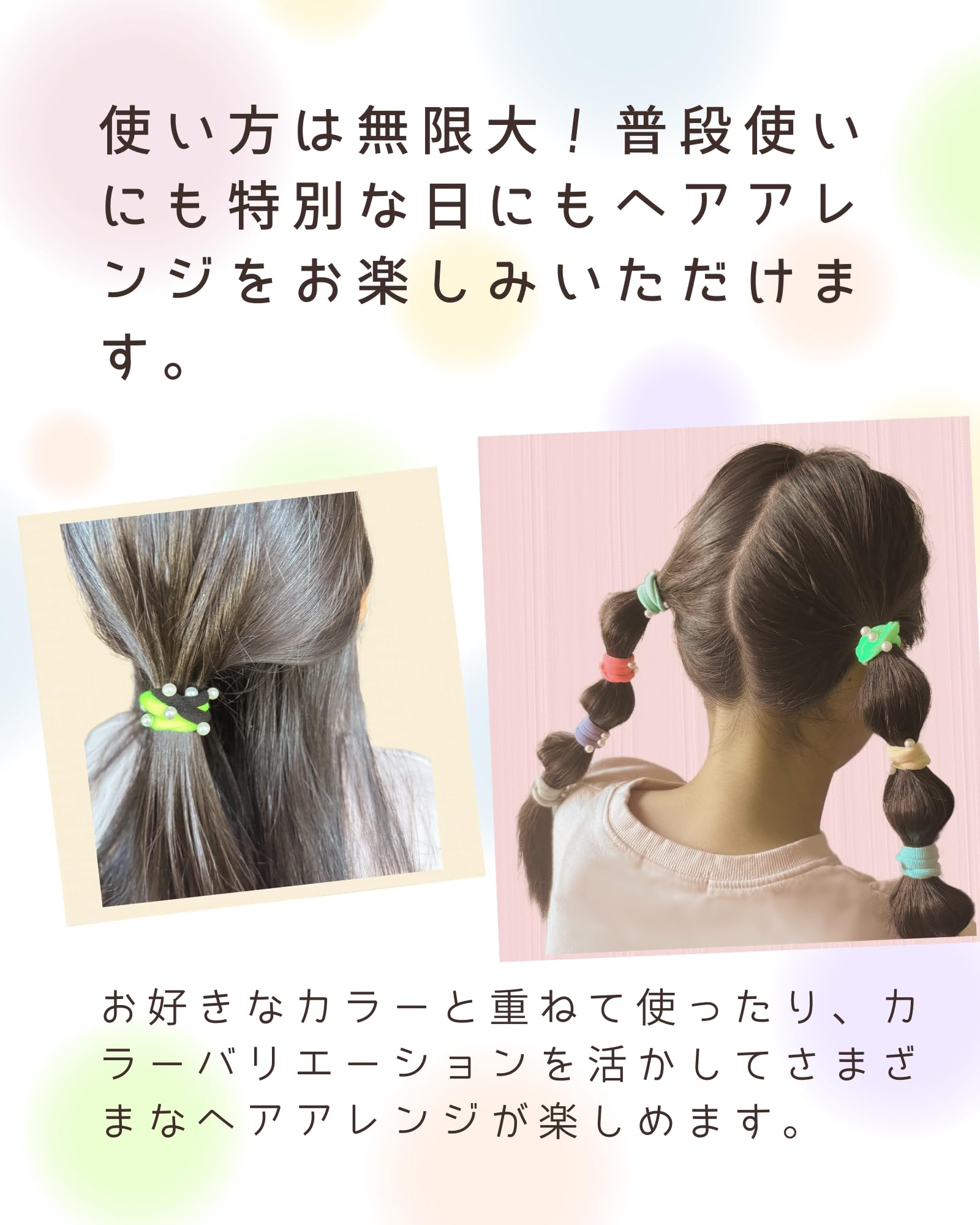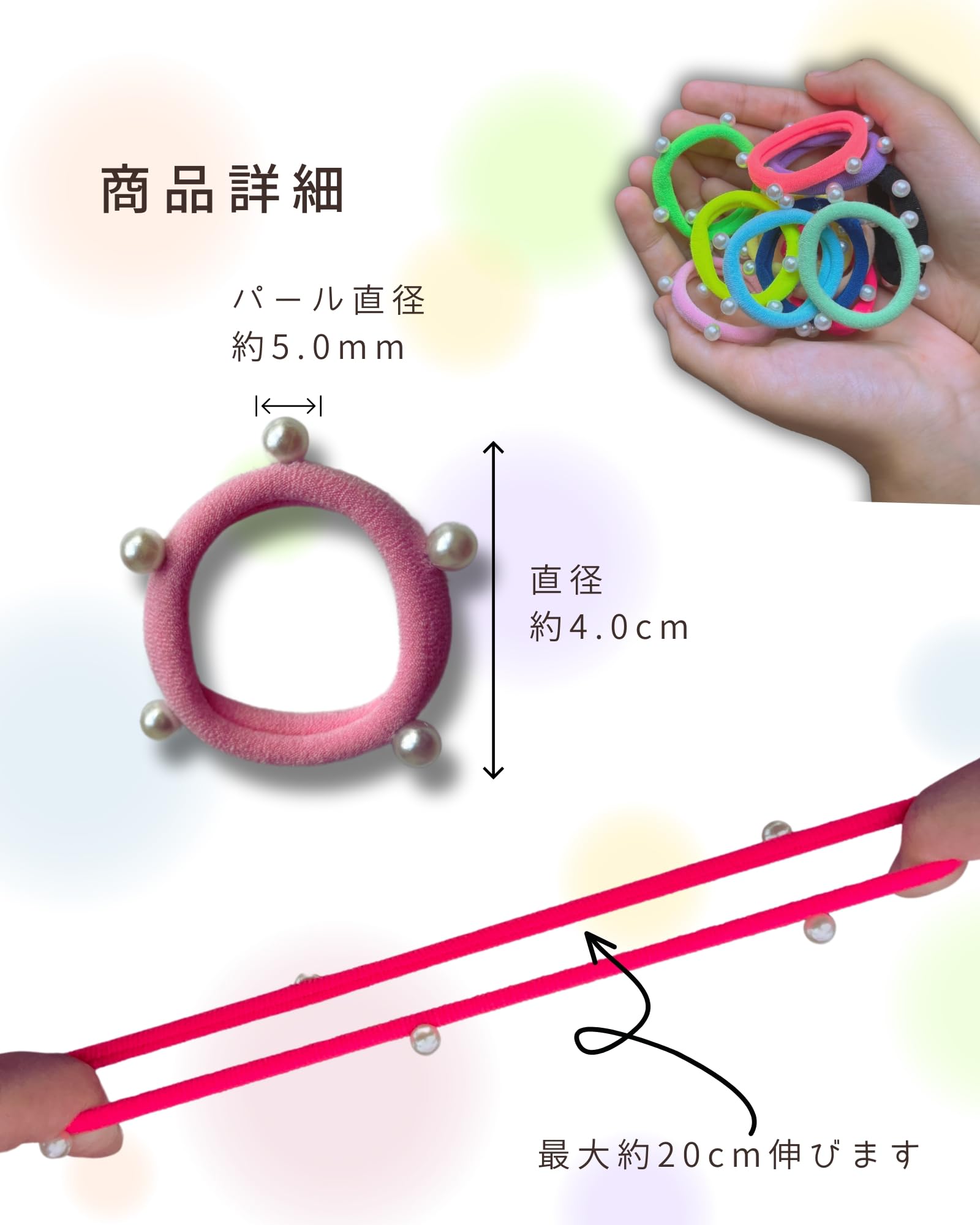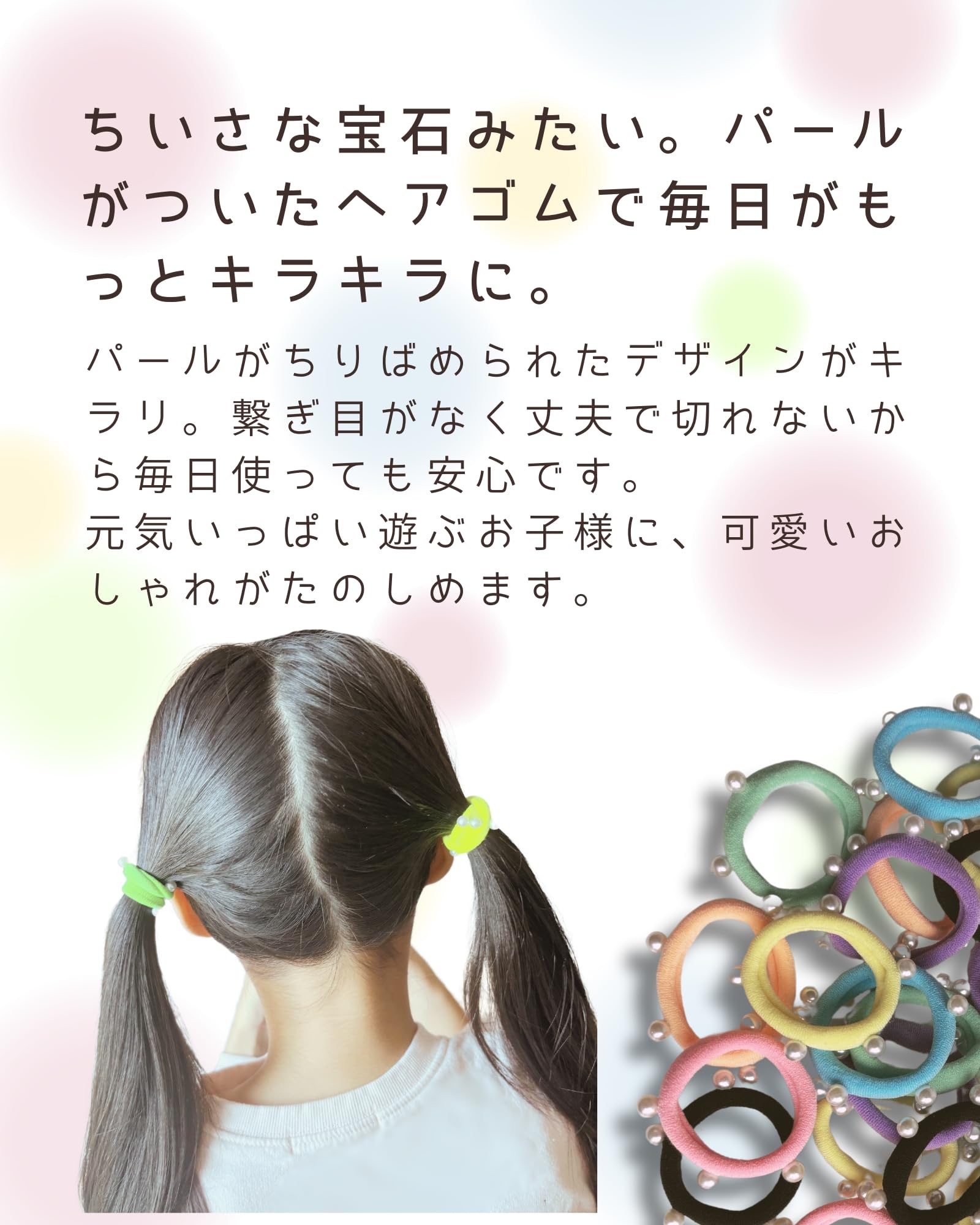 パールデザイン: キラキラと輝くパール付きヘアゴムで、お子様の髪を可愛く演出します