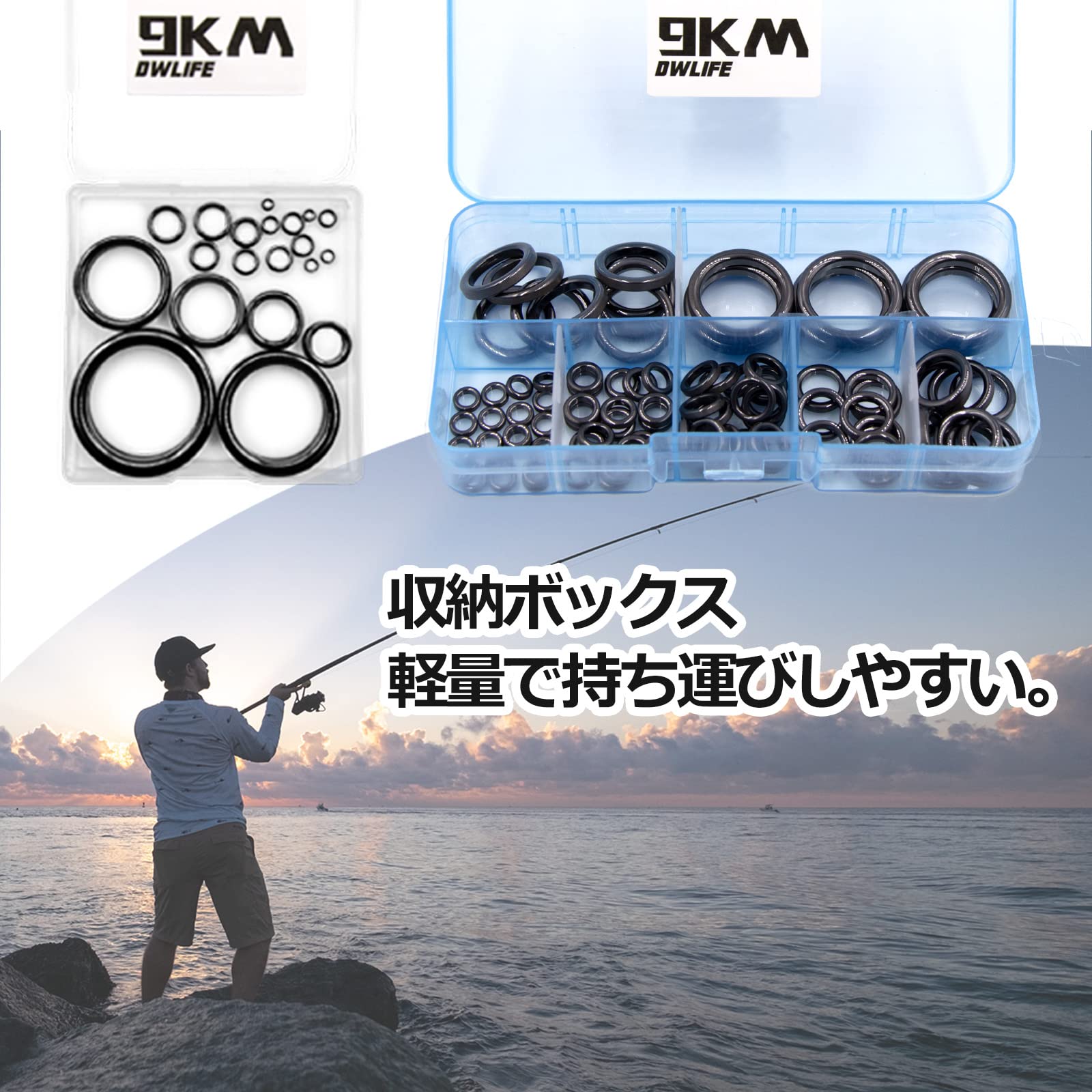 【軽量補修工具セット】すべてのセラミックリングを収納ボックスに収納し、持ち運びや整理に便利です。 セラミックリングは強度と軽さを同時に実現し、ロッドを軽量化しながら、より繊細でパワフルなロッドを作ることができるので、釣り愛好家が釣り竿を修理する際に大活躍します。
