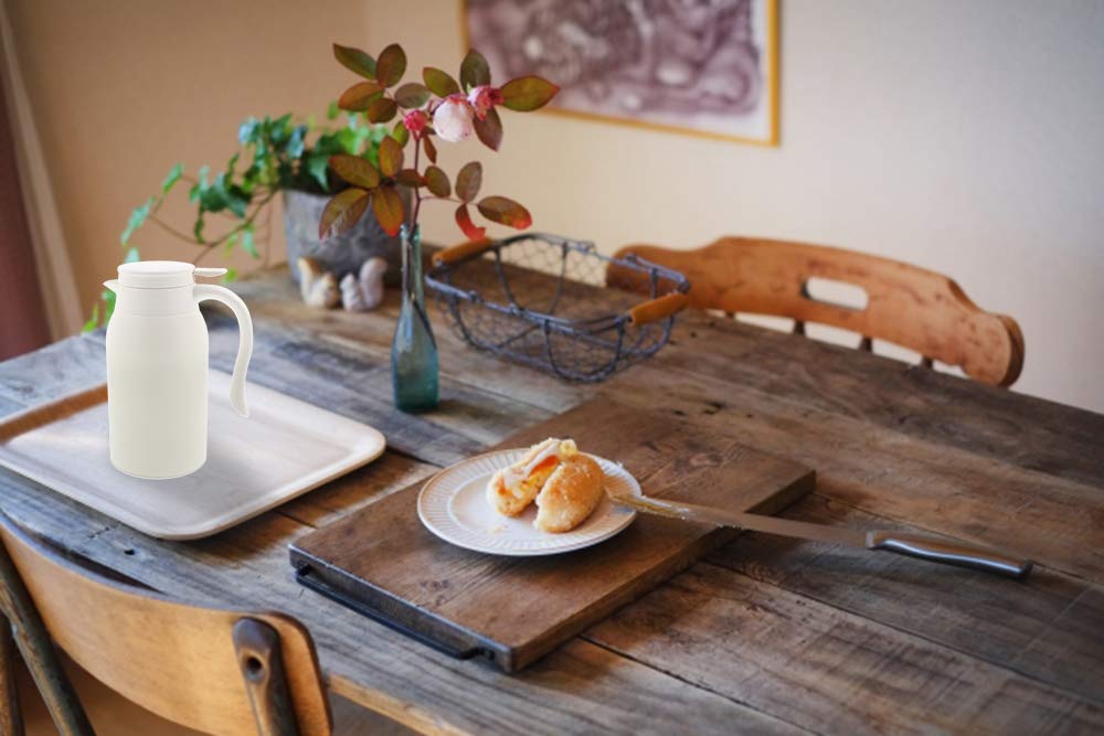 リビング MIP 卓上ポット0.9L ホワイト 保温 保冷 410340 サイズ(約):径10.5×高さ21cm、容量:0.9L 本体重量(約):506g 素材・材質:本体/ステンレス鋼、持ち手/ポリプロピレン、蓋栓/シリコーン・ポリプロピレン 生産国:中国 (企画/日本) 保温効力:59度以上 (10時間) ブランド リビング(Living) 材質 ステンレス鋼 色 ホワイト 容量 0.9 リットル 特徴 保冷