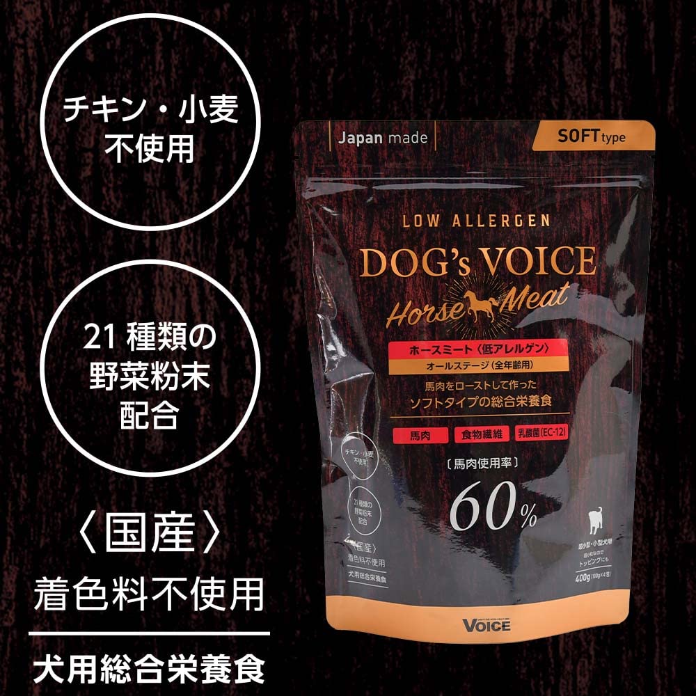 Voice ヴォイス Dog's Voice ドッグヴォイス ローアレルゲン ホースミート 400g 内容量:400g