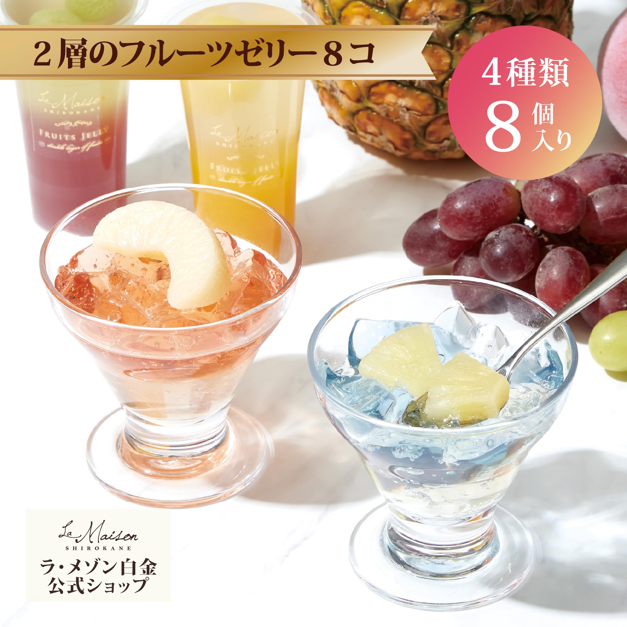【ラ・メゾン白金】 2層のフルーツゼリー 8個入 詰め合わせ 包蔵済み ギフト 残暑見舞い お返し 内祝い お供え