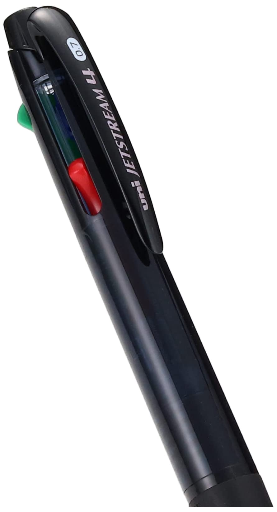三菱鉛筆 4色ボールペン ジェットストリーム 0.7 透明ブラック 書きやすい SXE450007T.24 型番:SXE450007T.24 ノック式/油性ボールペン ボール径:0.7mm インク色:黒、赤、青、緑 重量:13.6g サイズ:軸径 直径12.9mm×厚さ17.7mm×全長145.1mm ジェットストリームに4色多機能ペンが出来ました。