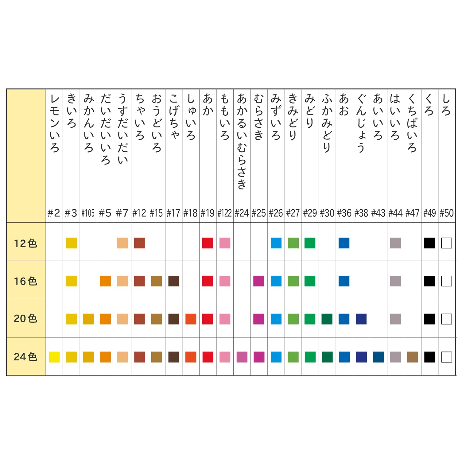 【16色】黄色・橙・薄橙・茶色・黄土色・こげ茶・赤・桃色・紫・水色・黄緑・緑・青・灰色・黒・白