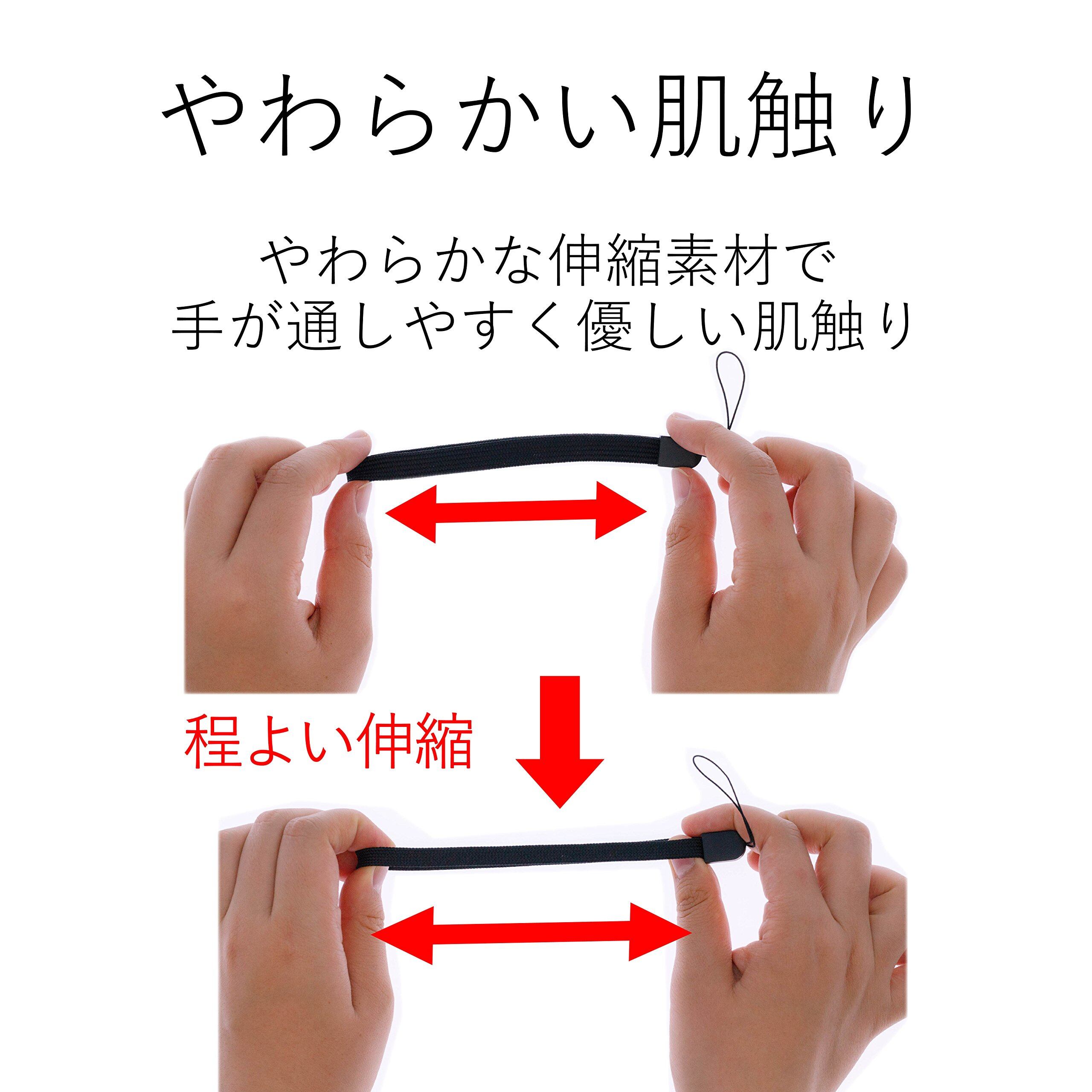 ●手に装着してスマートフォンの落下を防ぐ、伸縮素材を使用したハンドストラップです。●手に装着してスマートフォンの落下を防ぐ、伸縮素材を使用したハンドストラップです。●やわらかい伸縮素材を使用しているので、手が通しやすく、優しい肌触りを実現しています。●金属パーツを使用していないので、スマートフォンを傷付けにくく安心です。●ストラップの長さは約13cmです。●耐荷重は200gまでです。※耐荷重を超えて使用しないでください。