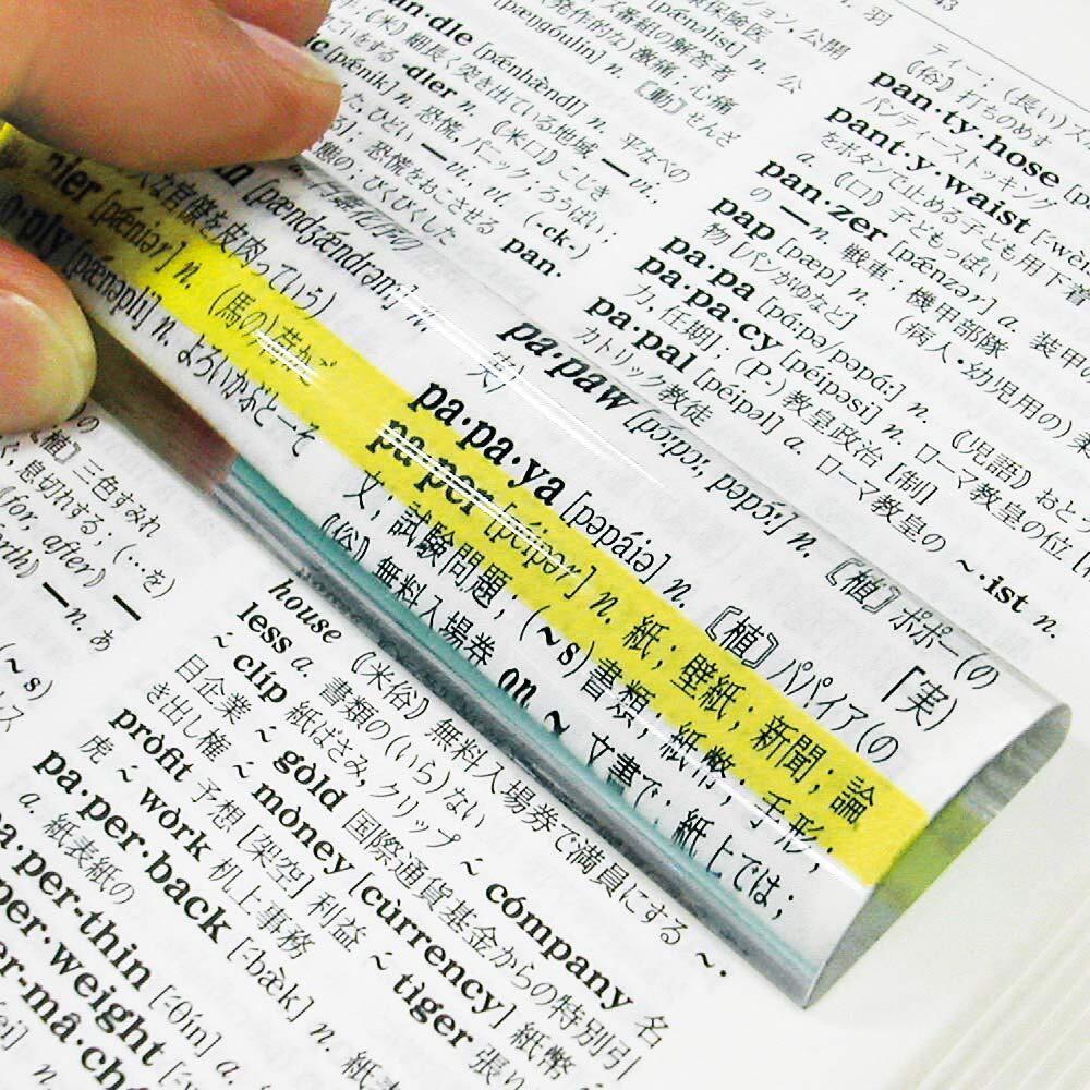 こんなのほしかった! の声から誕生した画期的な読みやすさのルーペです。 ●センターのカラーラインと文字を重ねることで瞬時に読取ることができる。 ● 一行一行を読取り易くし、さらに文字の大きさも2倍に拡大。 今まで分かり辛かった行の読取りがストレスなくスムーズになります。 ●行読みのばらつきを防ぎ、長時間の読取り作業でも目が疲れにくくなります。 ●通常の文章読取りはもちろん、事務書類の読取りや実験グラフなどの読取りにも。 ●使わない時はデスクに置いてペーパーウェイトとしてもご利用いただけます。 ●ライトラベンダー・ライトグリーン・ライトピンク・ライトイエローの4色展開。