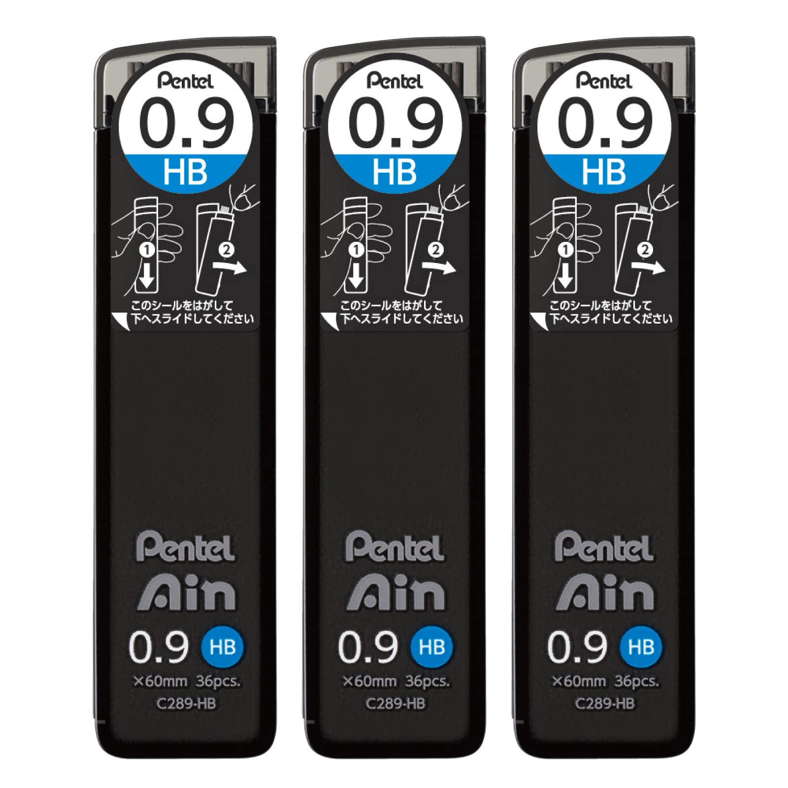 ぺんてる シャープ芯 ぺんてるアイン 0.9mm HB 3個 AMZ-XC289HB3P ブラック