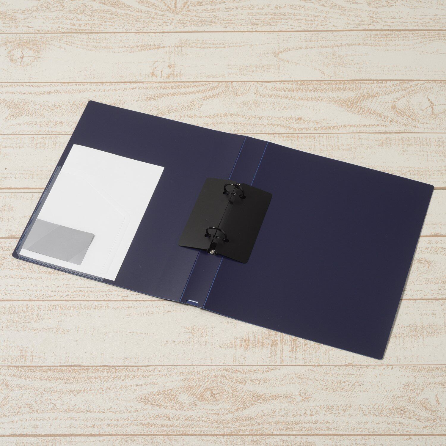傷や錆に強い黒メッキのとじ具を採用した、2穴式のリングファイル!