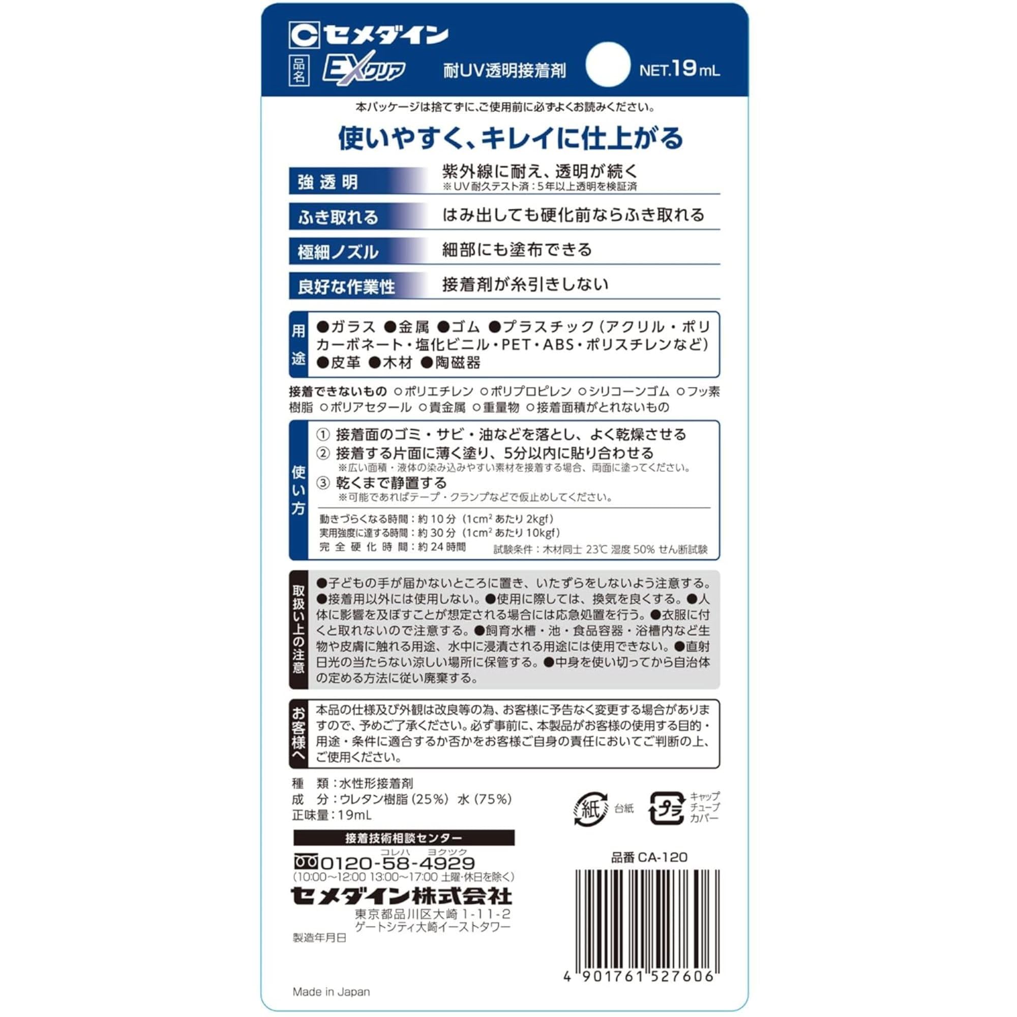 【人気】セメダイン(CEMEDINE) EXクリア 耐UV透明接着剤 19ml 強透明 拭き取れる 極細ノズル ガラス 金属 ゴム プラスチック CA-120 2本セット