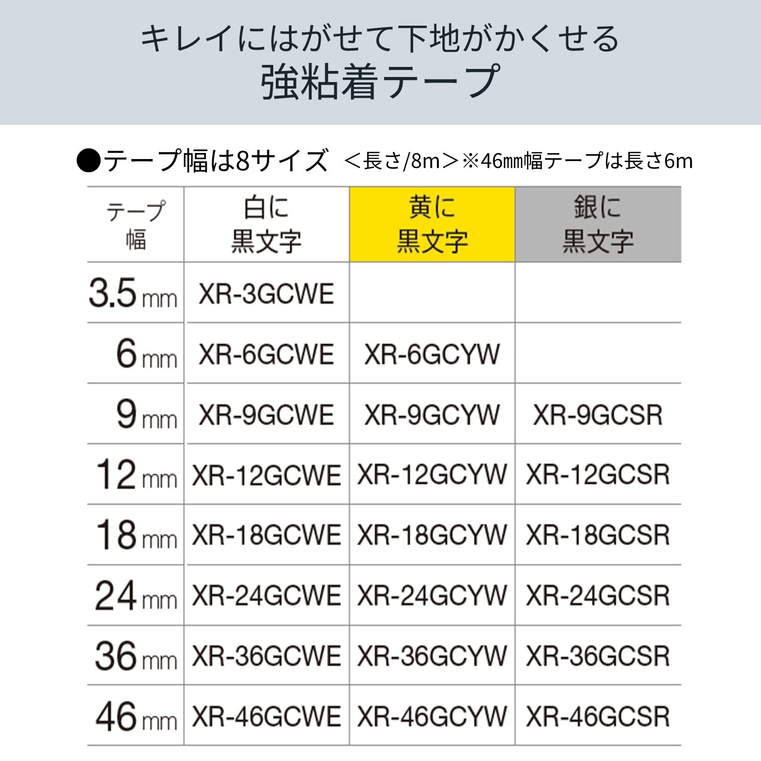 カシオ ラベルライター ネームランド キレイにはがせて下地がかくせる強粘着テープ 46mm XR-46GCWE 白
