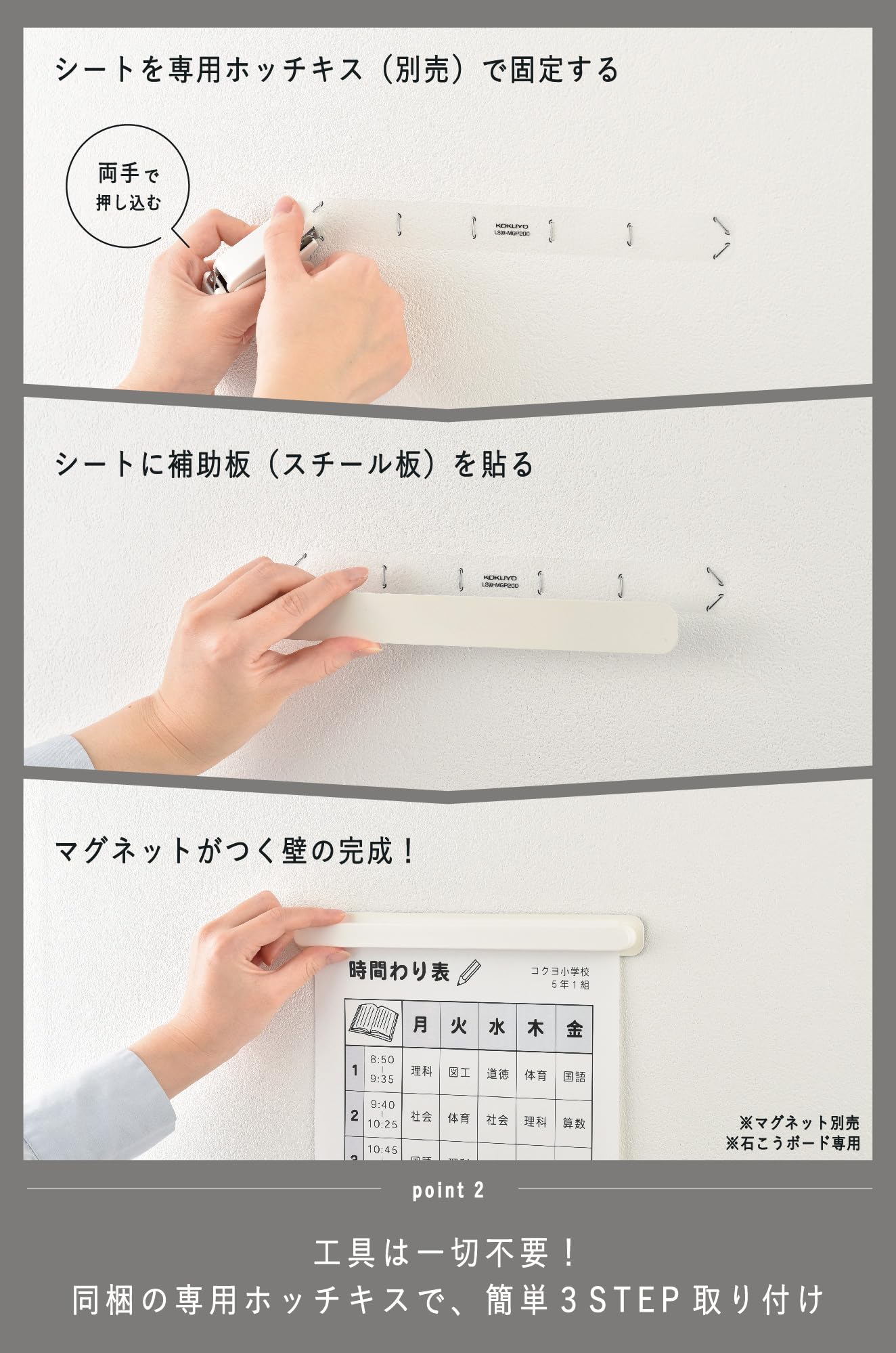 【特価処分】コクヨ 磁石がつく スチールプレート マグネットボード 壁につけるマグネット 補助板 バー 1枚入り 長さ24cm ホワイト 賃貸 LSW-MGP200W