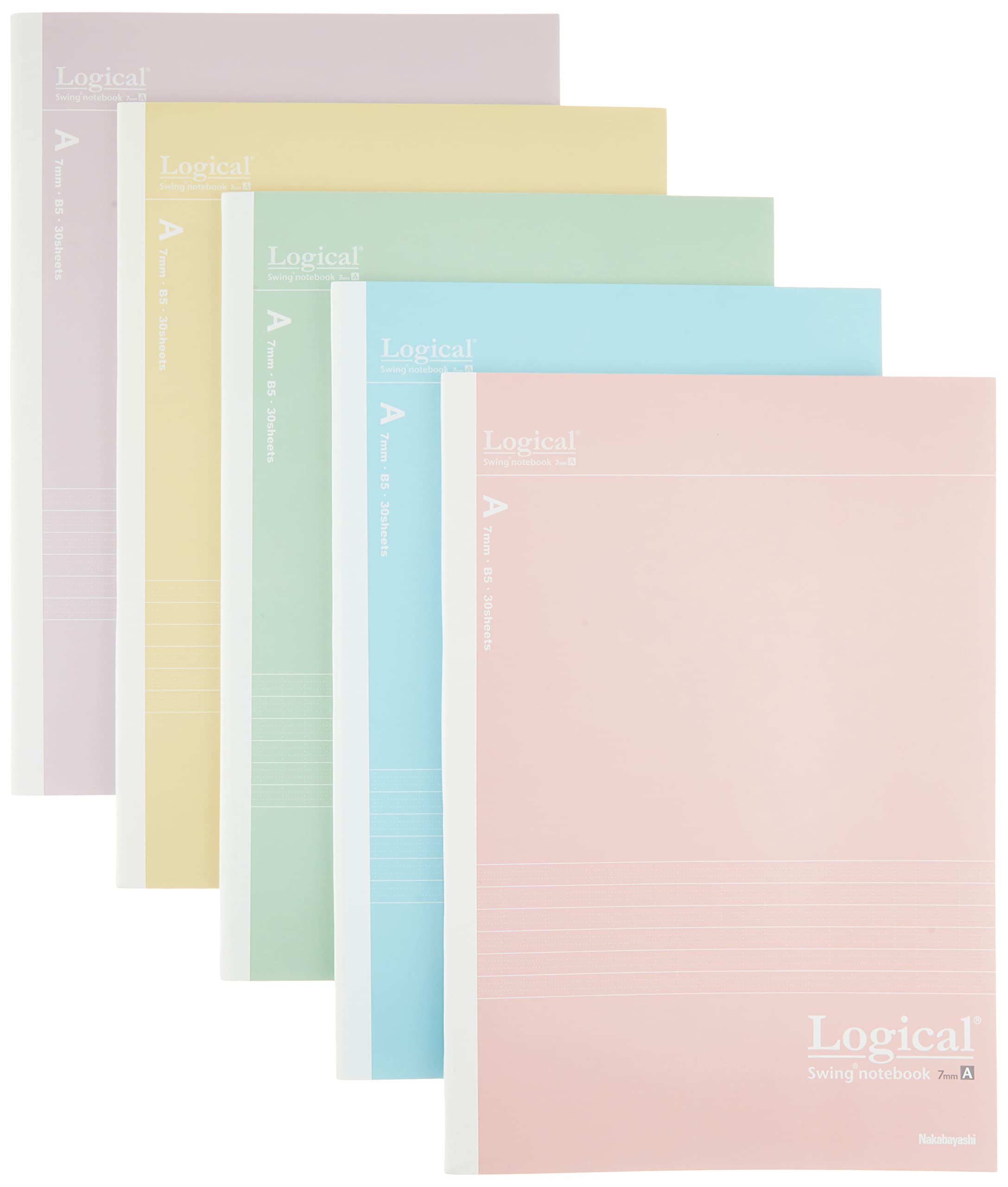 ナカバヤシ スイングロジカル 抗菌表紙ノート セミB5/A罫/30枚 スモーキーカラー 5冊パック NB514A-5P