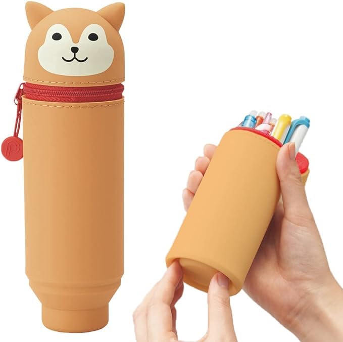 リヒトラブ スタンド ペンケース プニラボ シバイヌ A7712-2 【収容本数】約15本 【フタ裏部】消しゴムホルダー付 【デザイン柄】シバイヌ 【素材】シリコーンゴム 【重量】160g やわらかく手触りのよいシリコン製のペンケース。 上から押すだけでスタンドペンケースに早がわり。 かわいい動物柄のデザイン。 シリコン製なので汚れても水洗い可能。
