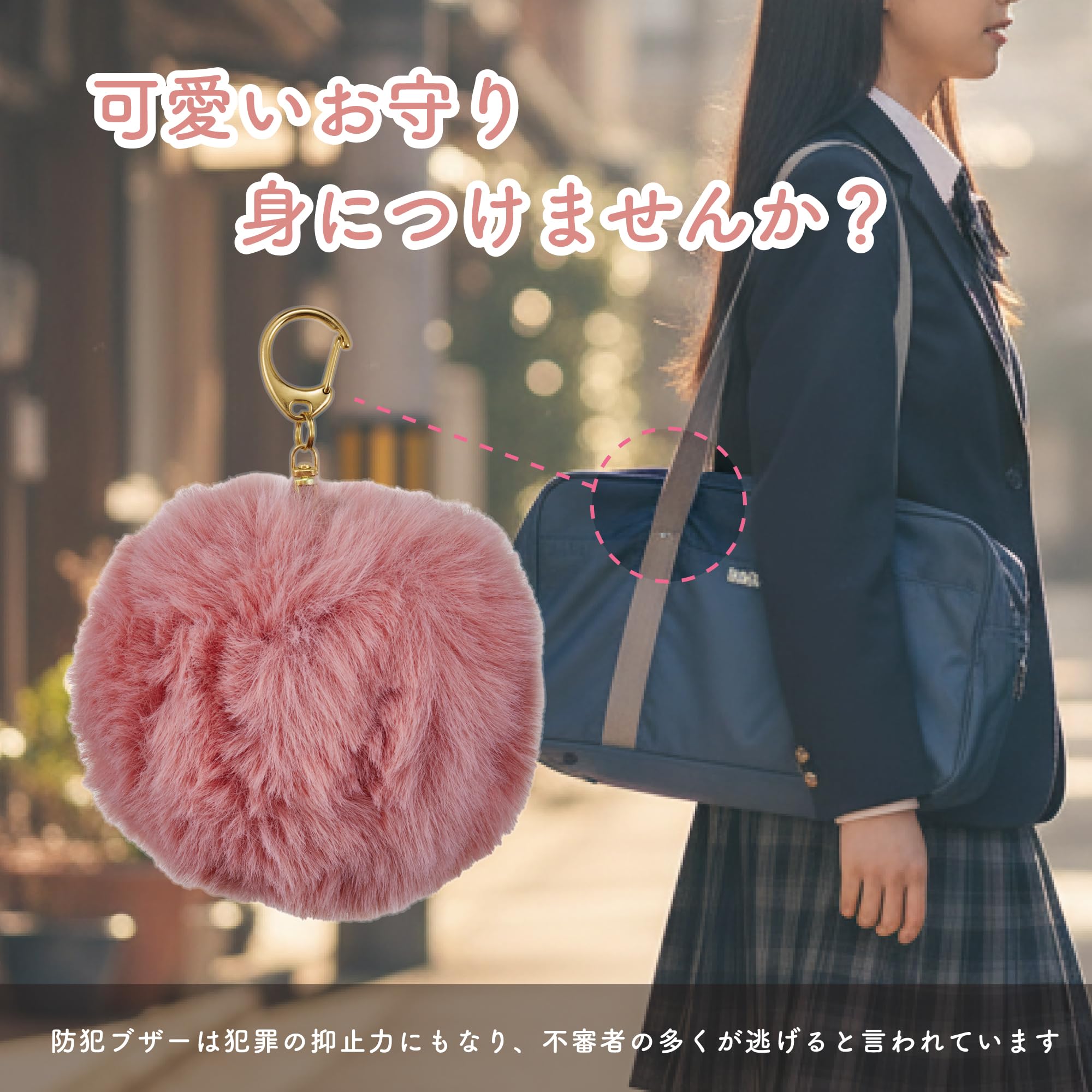 通勤・通学に安心な、アスカのポンポン防犯ブザー。ふわふわモフモフで可愛くて、子供から大人まで幅広く使えます。