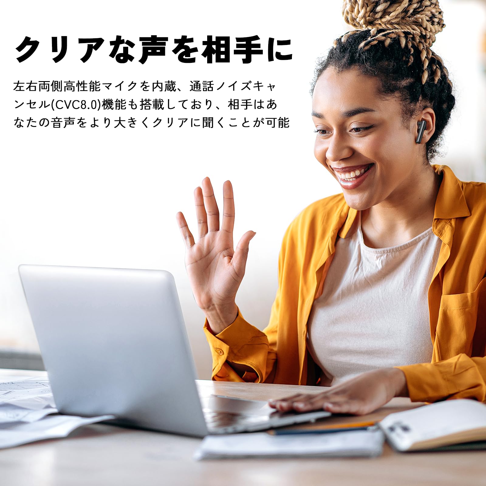 迫力の高音質 & 通話も快適:13mmの大口径ドライバーを搭載し、低音から高音までクリアでバランスの良いサウンドを再現。音楽鑑賞はもちろん、通話やオンライン会議でもクリアな音質を体験いただけます。