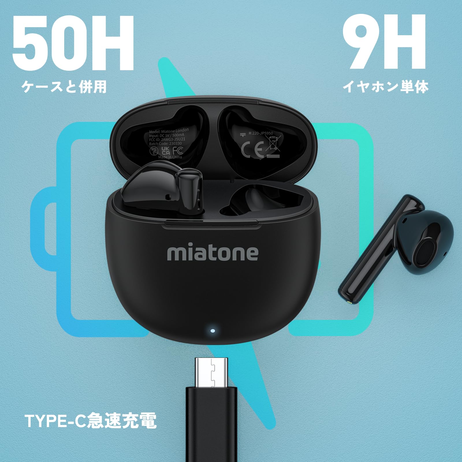 【人気】【2025新登場 自体9時間再生&合計50時間再生】MIATONE ワイヤレスイヤホン Bluetooth 5.3イヤホン 超軽量 ブルートゥースイヤホン 自動ペアリング ハンズフリー通話 防水 左右分離型 Type‐C急速充電 スマホ プレゼント