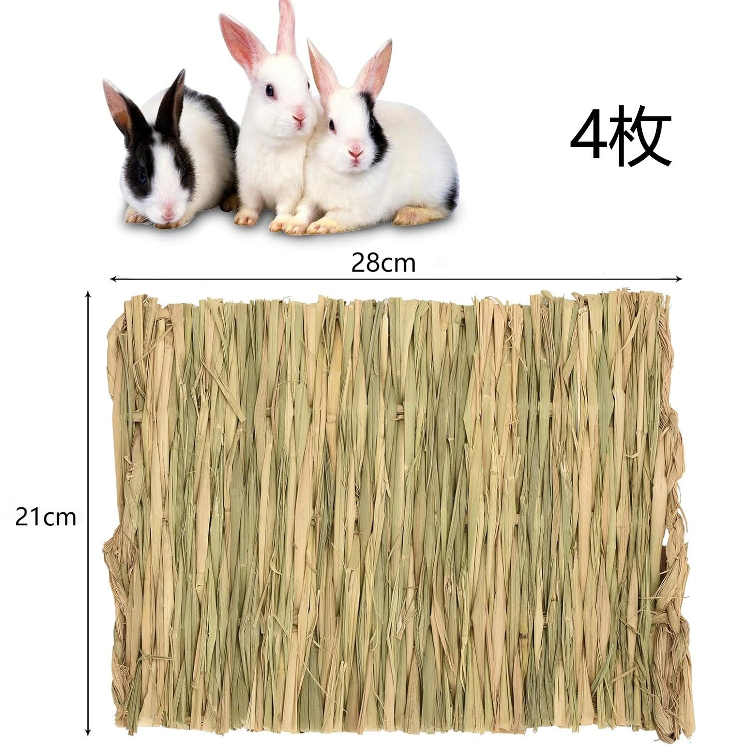 4枚入 わらっこ倶楽部 うさぎの座ぶとん うさぎ チモシーマット ウサギマット 草の編み物 手編みクラフト ケージ内装 天然素材 休み場所 遊び場 うさぎ/モルモット/ハムスター/小動物用 ペット用品 (28*21cm)