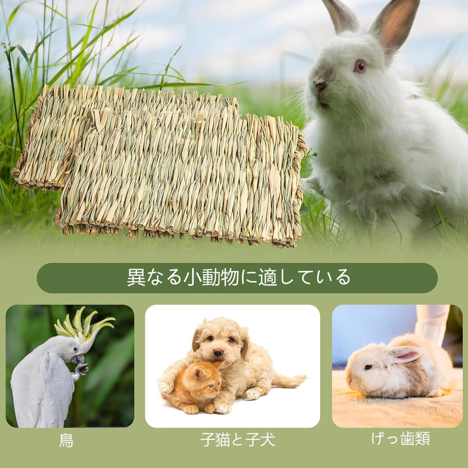 このうさぎ マットは天然草で作られています、健康的で安全で無毒です、手編みで、ペットに安全で快適な家を提供します。編みこみの草のベッドは自然から来ており、噛むおもちゃとしても使用できます。草のマットはとてもいい選択です。