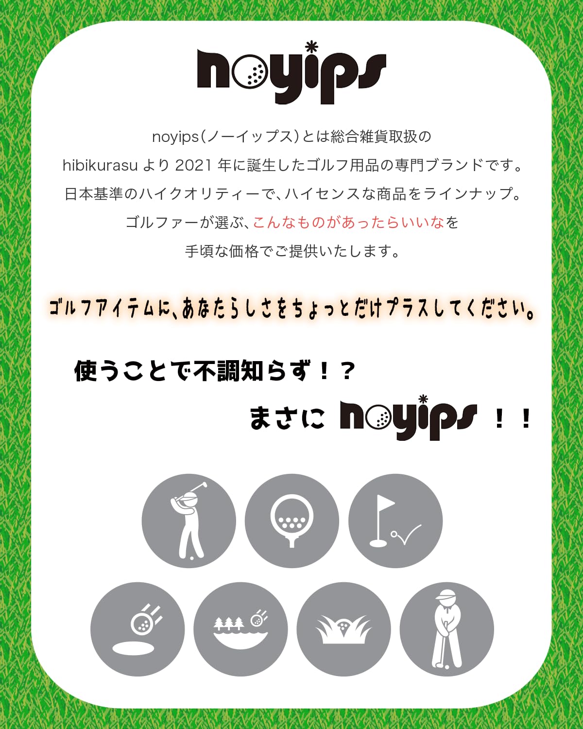 ?【 noyips 】 総合雑貨ブランドのhibikurasuから生まれた、ゴルフ専門ブランドnoyips(ノーイップス)です。日本基準の検品・販売・管理・発送にて皆様のお手元にお届けいたします。