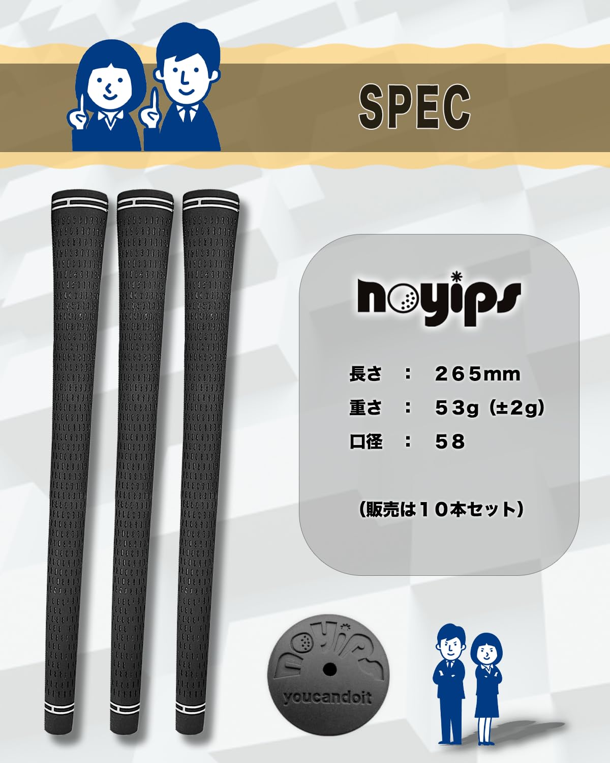 【努力特価】noyips ゴルフ グリップ 10本セット ゴム100% バックラインなし 口径 58 黒 ブラック hibikurasu GOLF