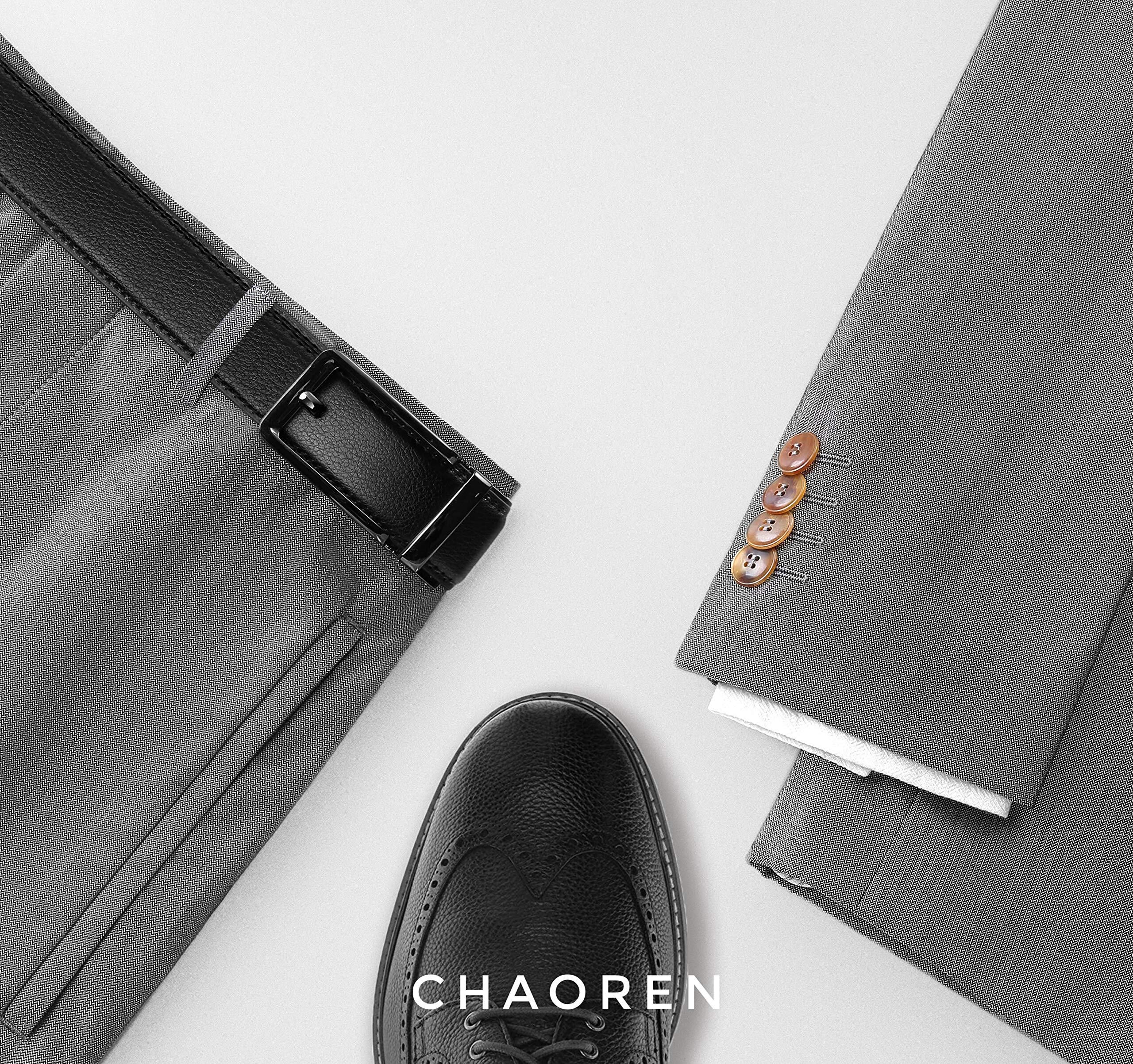 【在庫のみ】[CHAOREN] ベルト メンズ ビジネス - オートロック式 大きいサイズ 紳士用ベルト 本革 - 使いやすい スーツ 穴なし 無段階調節 多サイズ 35mm幅 箱付き
