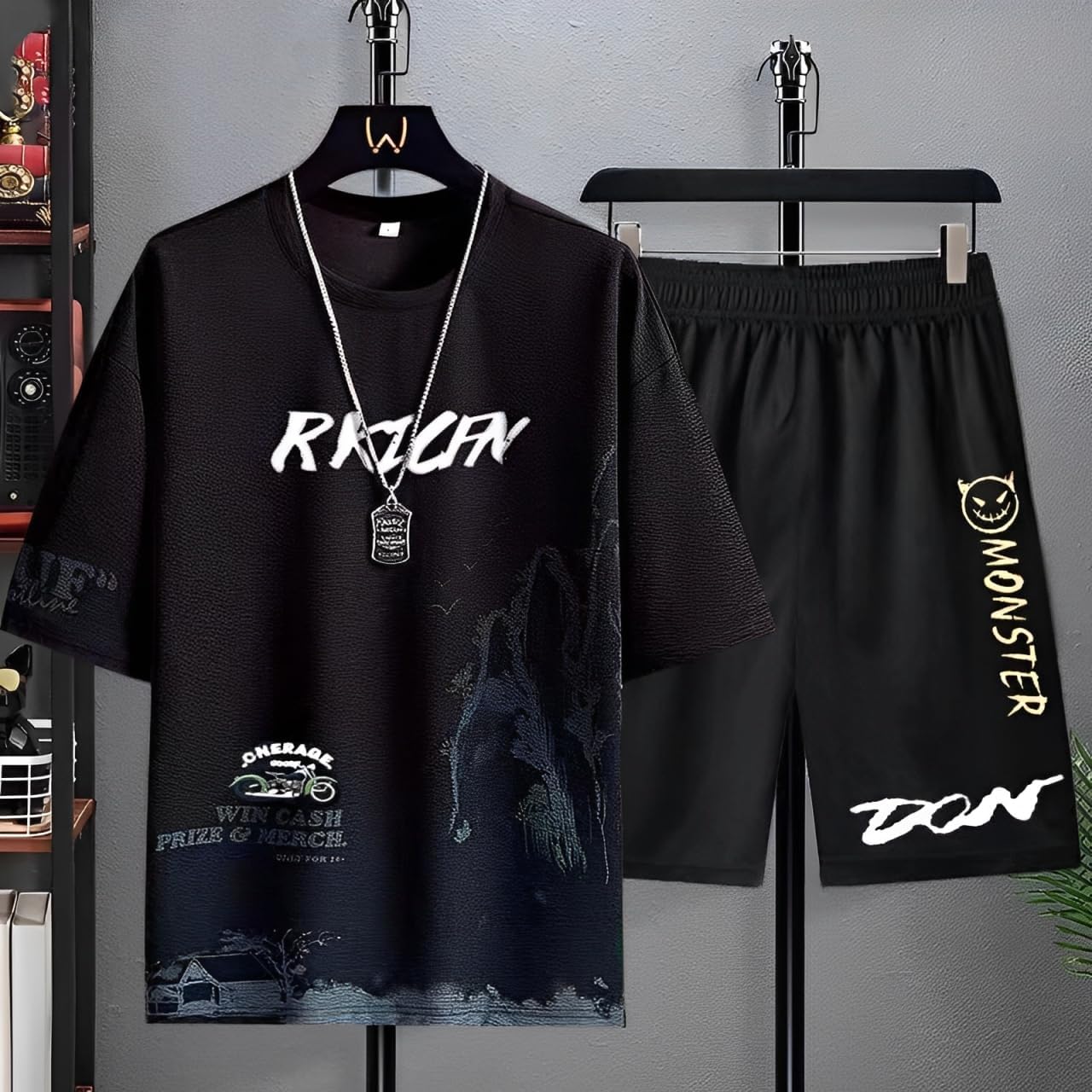 ◆1セット持つだけでコーデの幅が一気に広がるオシャレアイテム♪ ◆ストリートスタイルを感じさせる半袖短パンのセットアップ♪ ◆個性的に彩る和と洋の雰囲気を表現したプリントデザインが特徴♪