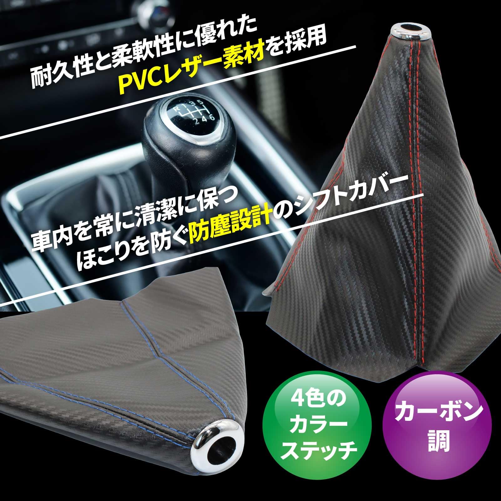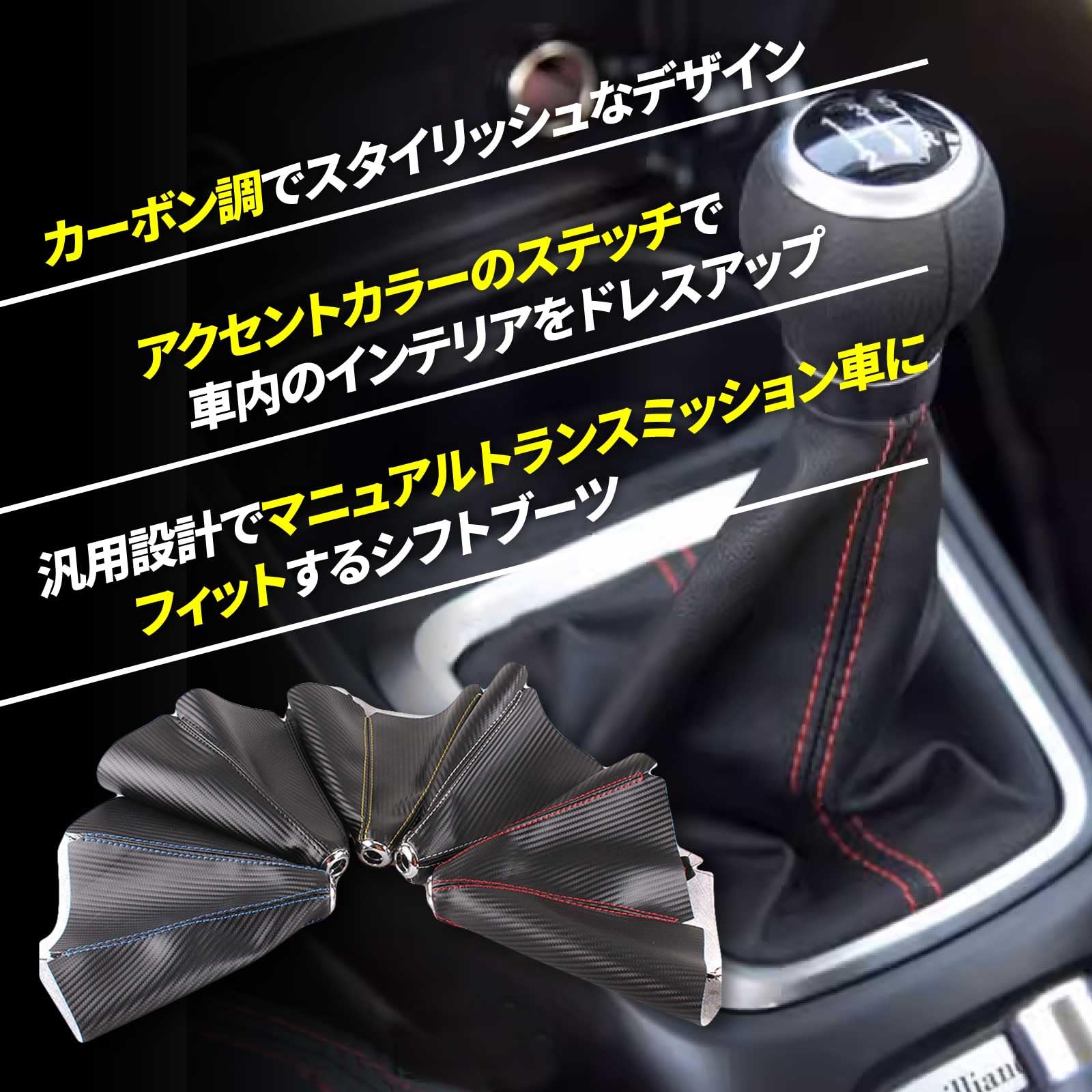 ?【上質なカーボン調シフトノブカバー】カーボン調でスタイリッシュなデザインのシフトノブカバーになります。アクセントカラーのステッチで車内のインテリアをドレスアップして毎日のドライブを特別な瞬間に変えます。
