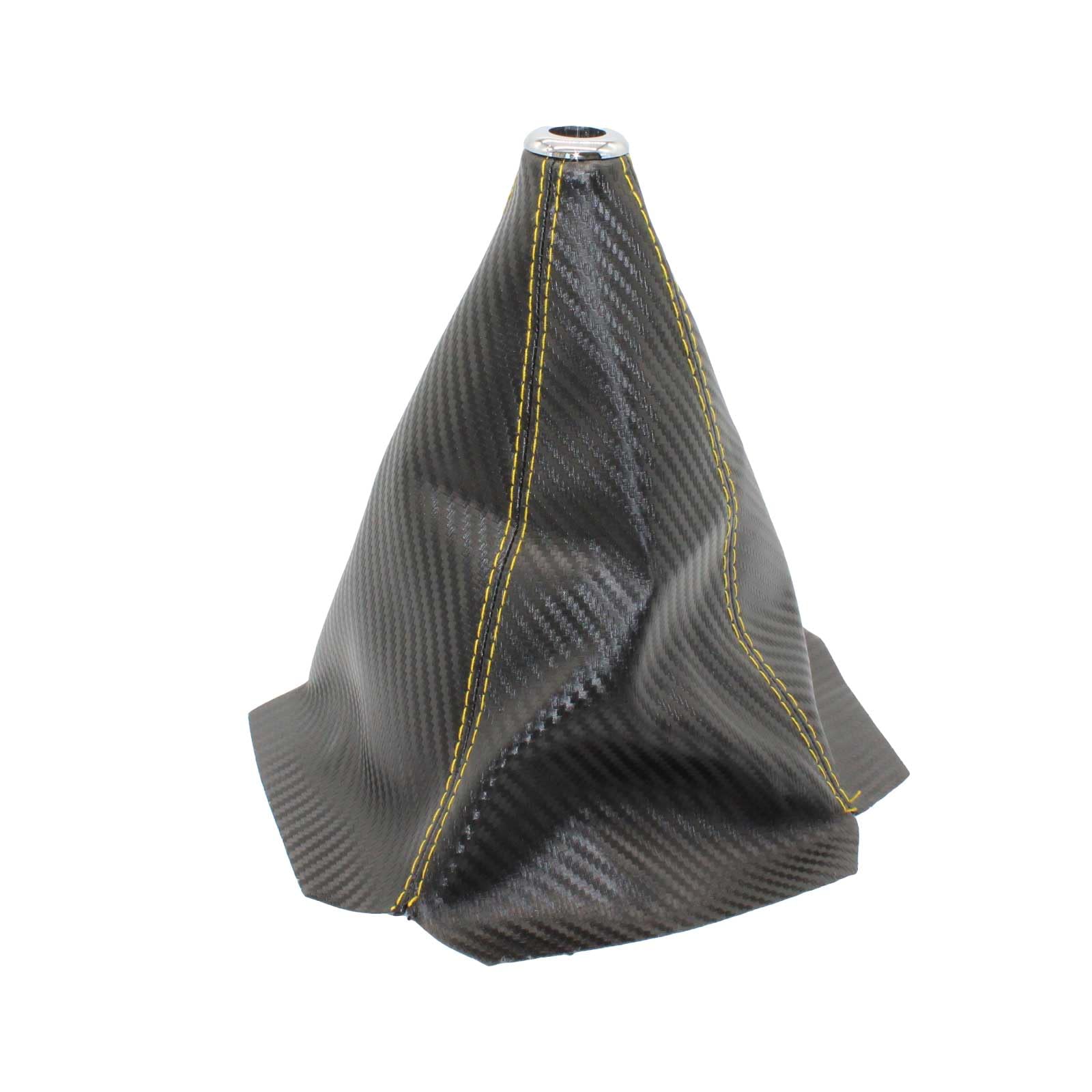 Funriche シフトノブカバー 汎用 シフトブーツ カーボン調 シフトカバー PVCレザー ステッチ 4色 シフト ノブ カバー 交換 パーツ(イエロー)