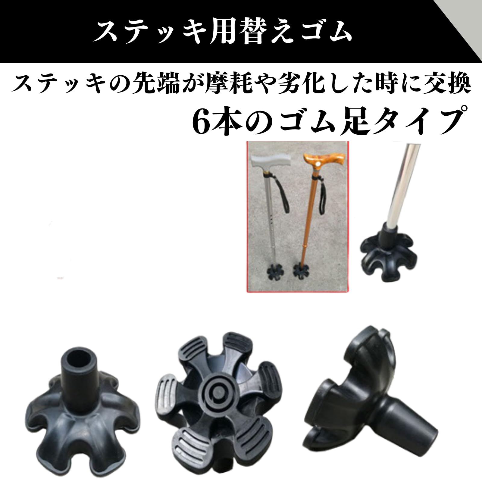 【在庫処分】Quikaboo 杖先ゴム 6本足 替えゴム ステッキ ステッキ用ゴム 杖 19mm (6点)