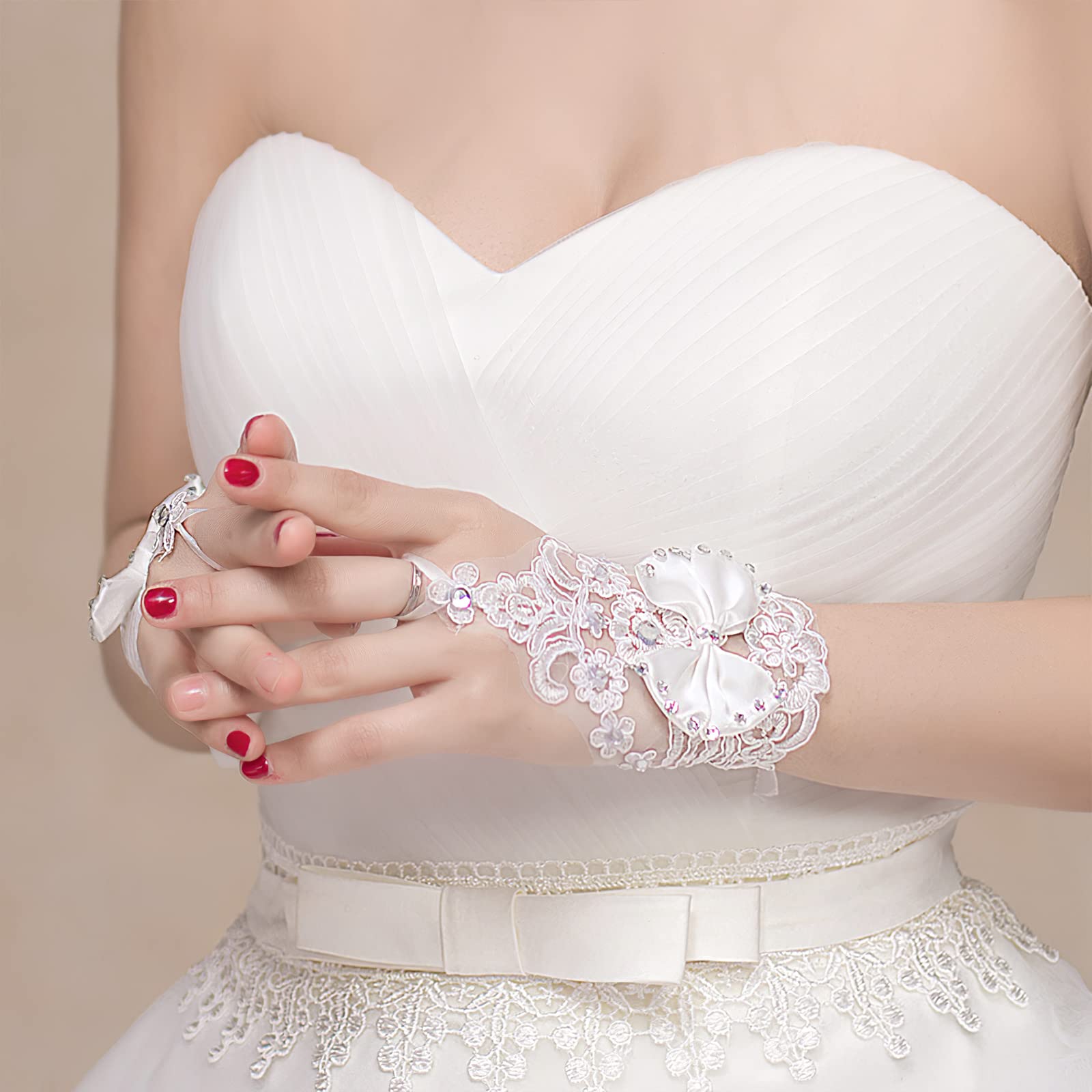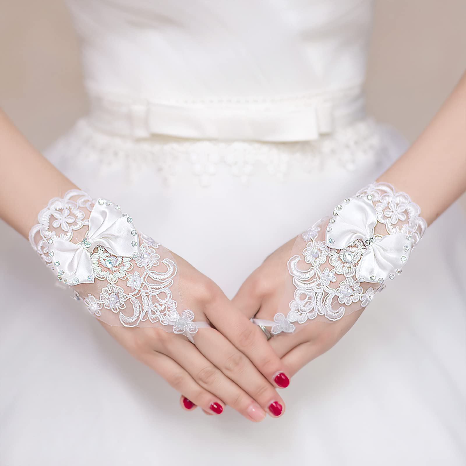 【広く使われている】結婚式の手袋に限らず、これらの短いレースの手袋はあなたのドレスの良い装飾であり、より美しく魅力的です。 さまざまな結婚式、洗礼式、美人コンテスト、聖体拝領、ダンス、イブニングパーティー、ステージパフォーマンス、その他の正式なパーティーに簡単に参加できます。