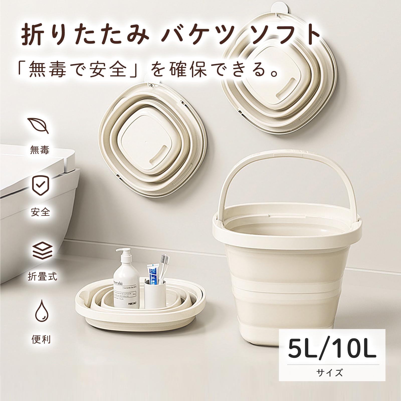 この革新的な折りたたみ式バケツは、ご家庭での省スペース収納に最適です。5L/10Lの2つの実用的なサイズをご用意し、巧みなデザインでコンパクトに折りたたんで簡単に収納できます。高品質のPP+TPR素材の組み合わせで作られており、耐久性と柔軟性を兼ね備えています。丈夫なPP素材は優れた耐熱性と耐摩耗性を備え、TPRは弾力性と耐久性を確保します。丸みを帯びた注ぎ口を備えた洗練されたデザインは、注ぐ際のこぼれを防ぎます。人間工学に基づいたハンドルは持ち運びに便利です。上品なホワイト仕上げで、どんな空間にもさりげなく溶け込みます。特にシンク下や狭いスペースでの収納に最適です。機能性と省スペース収納を兼ね備えた、ご家庭、庭、キャンプに欠かせないアイテムです。