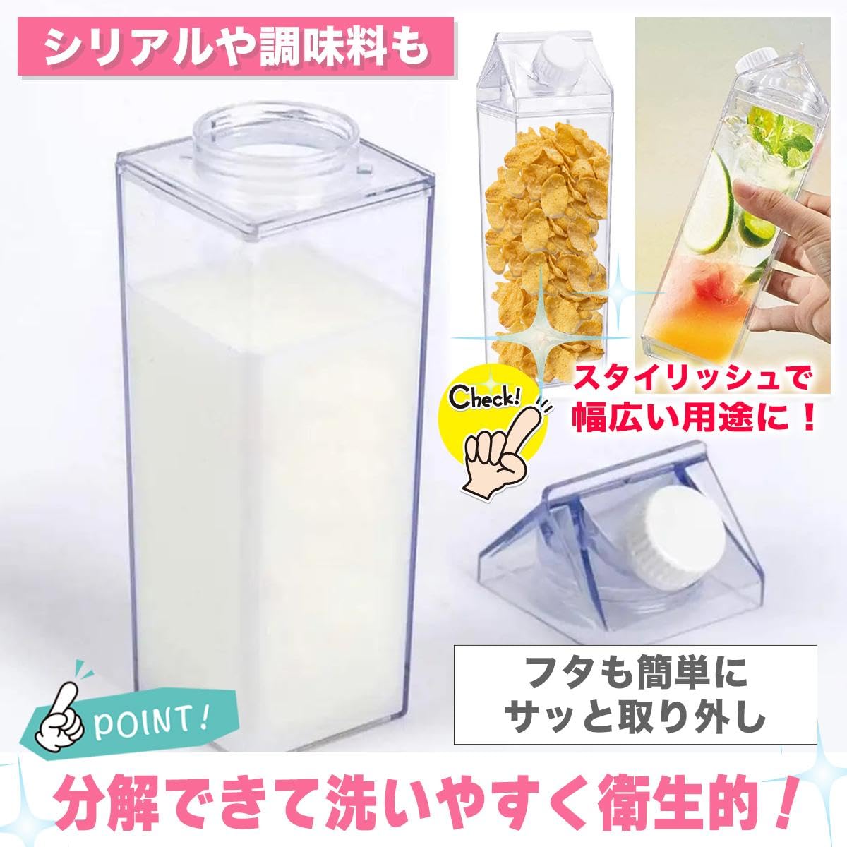SNSで話題沸騰!普段の日常をおしゃれ雰囲気に変えてしまいます。 牛乳パック型ドリンクボトルは持ち運びに便利です。コンパクトなサイズで、簡単に収納できます。外出先やオフィスでおしゃれに飲み物を楽しむことができます。 さらに、牛乳パック型ドリンクボトルは持ち運びの際に液体漏れの心配がありません。しっかりとした密閉機能があり、飲み物を安全に保持します。 ピクニックやアウトドアイベントにも最適です。牛乳パック型ドリンクボトルは、アクティブなライフスタイルにピッタリのアイテムです。 飲み物を楽しむだけでなく、環境にも配慮した商品です。 牛乳パック型ドリンクボトルは、革新的なデザインと便利な機能を兼ね備えた、あなたの新しいお気に入りアイテムになること間違いありません!ぜひ、今すぐ手に入れて、飲み物をよりスタイリッシュに楽しんでください!