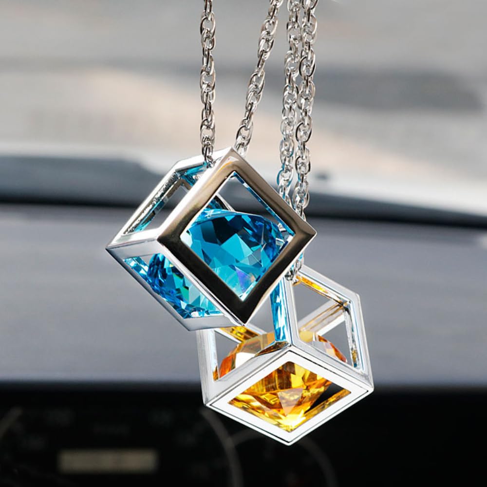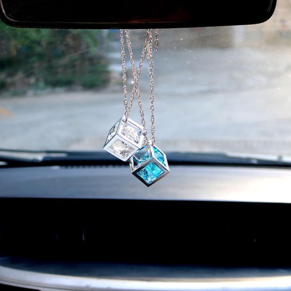 説明:車内を彩るクリスタルキューブアクセサリー。 バックミラーに引っ掛けて垂らすだけで、瞬時にドレスアップ。 クリスタルとメタルが光と輝きを集めます。