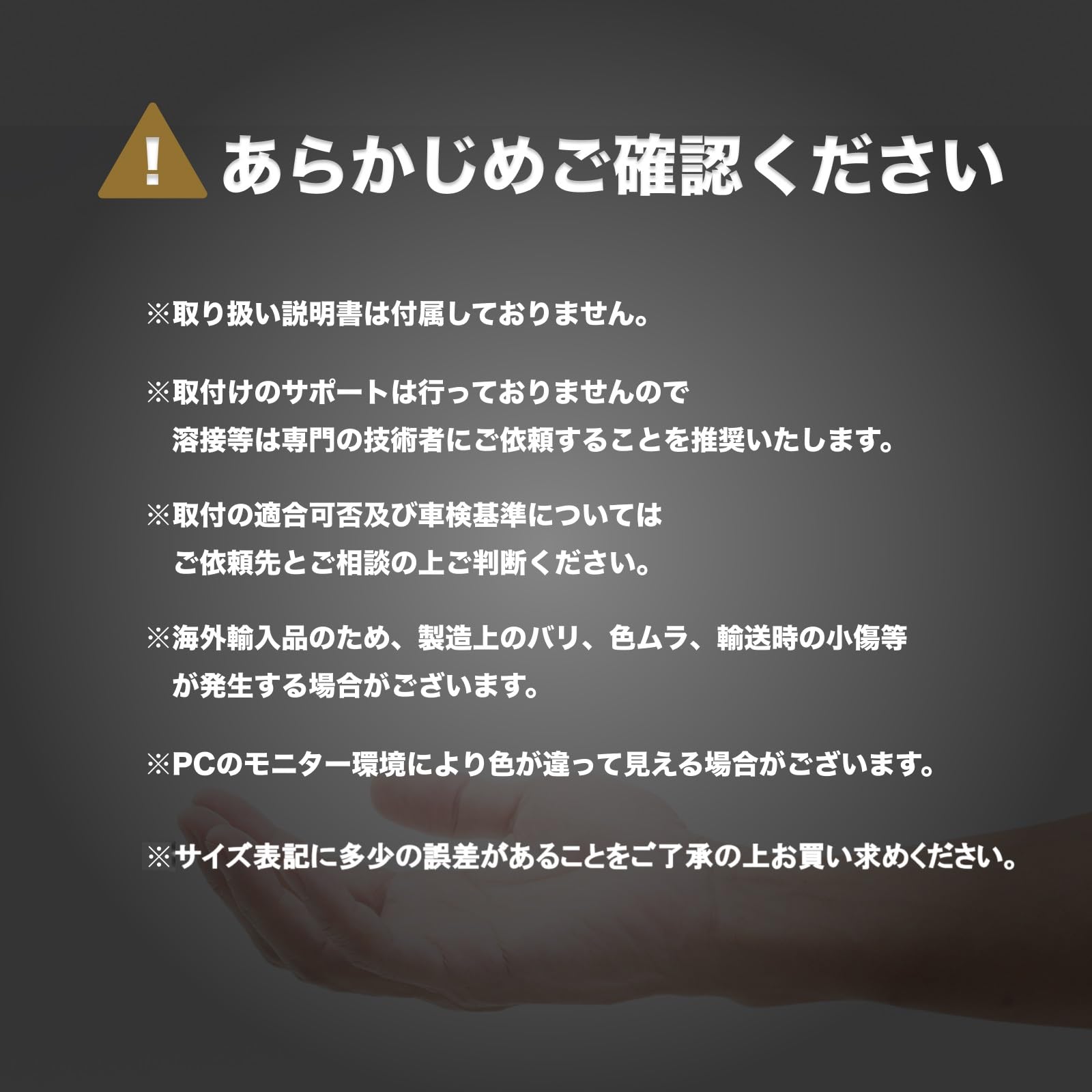 【ご購入前の注意事項】 ・本商品は極性があります。点灯しない場合は差し込み方向を逆にしてお試しください。 ・車種や取り付け位置によってはサイズや仕様が合わない場合がございます。事前に寸法・形状をよくご確認の上、ご購入ください。 ・取扱説明書は付属しておりません。取り付けに不安がある場合は専門業者へのご依頼をおすすめします。 ・本製品は輸入品のため、製造過程や輸送中に生じる微細な傷が見られる場合がございますが、使用には問題ございません。 ・使用によって生じた車両本体の不具合・損傷等については、当店では責任を負いかねますので、予めご了承の上ご購入ください。