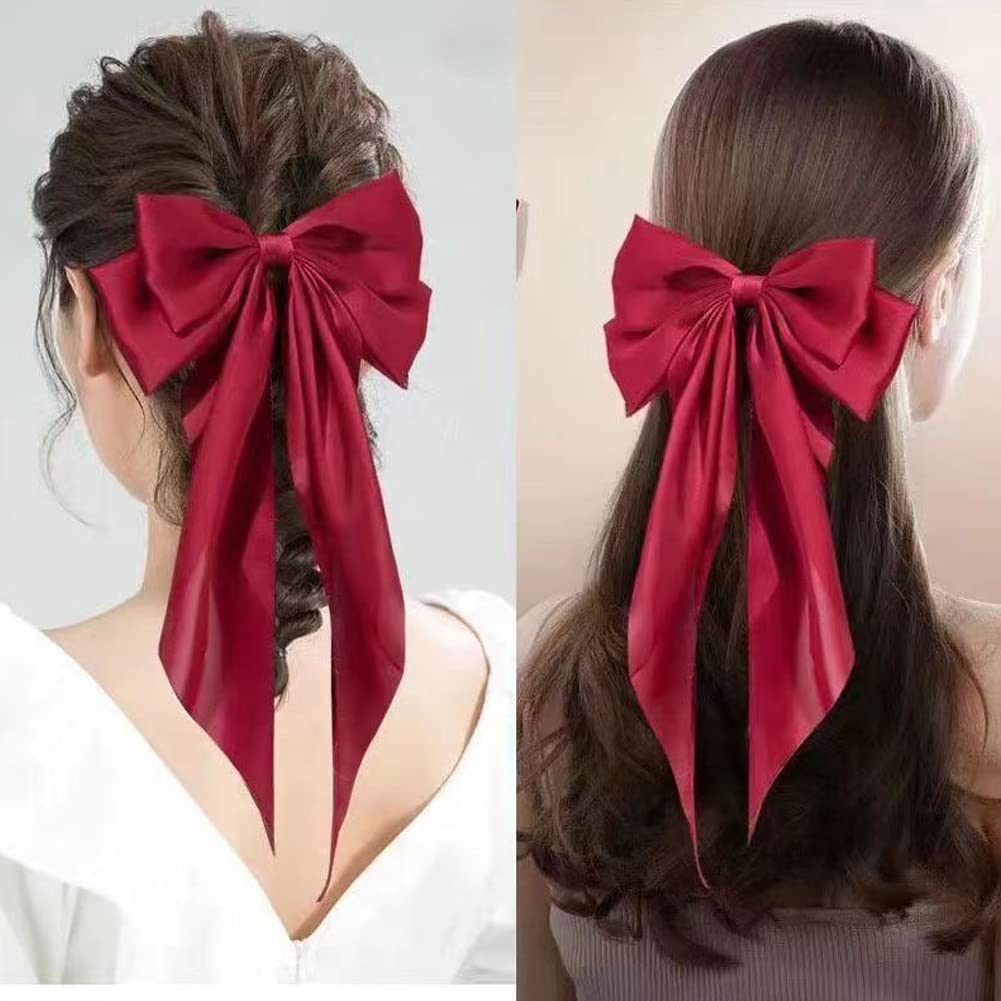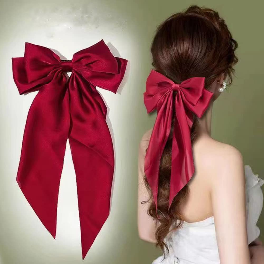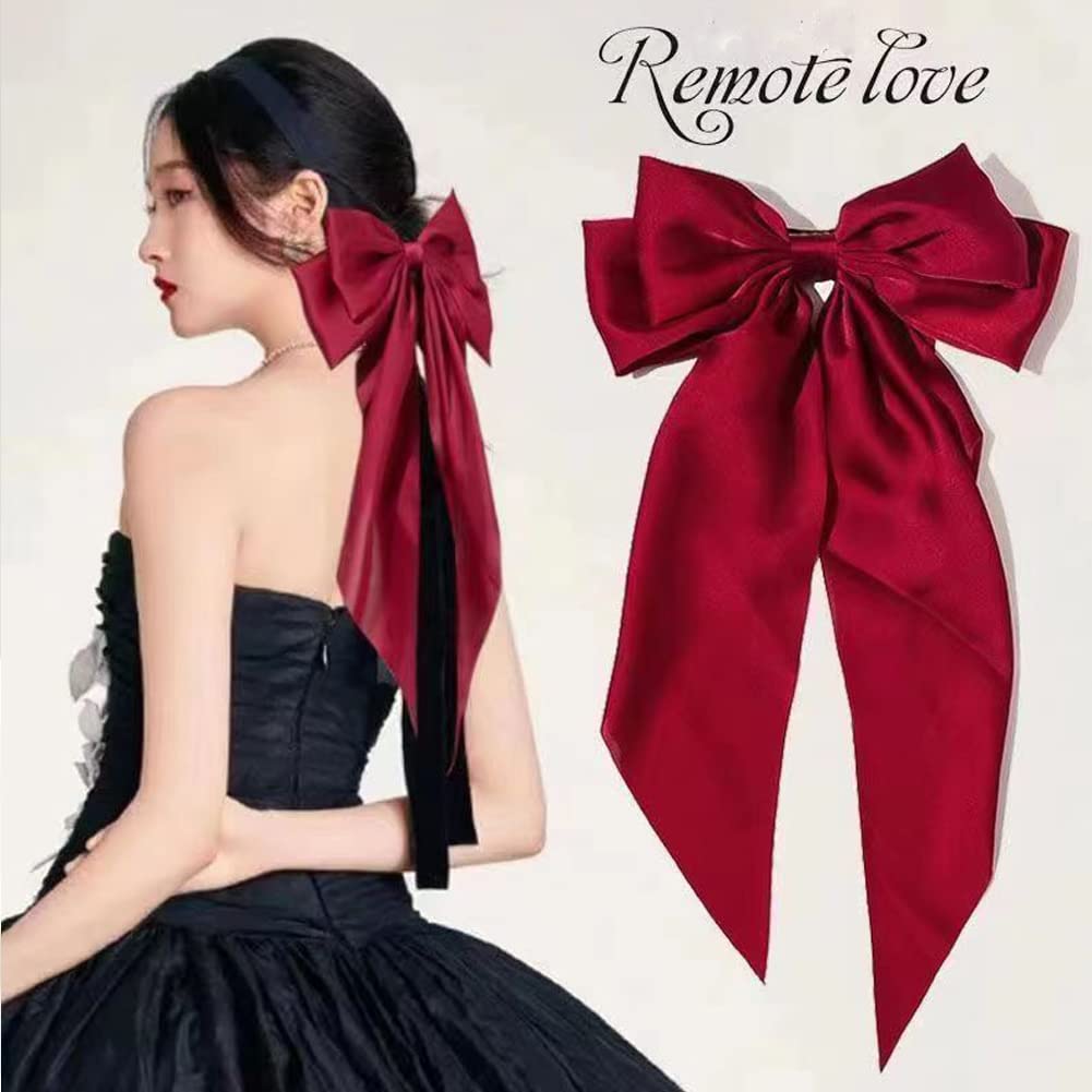 可愛いもエレガントもつるりとなめらかなシルクのようなとろみ素材のビックリボンバレッタ華やかさと落ち着き感を兼ね備える形で、女性らしい気質を引き立て、立体感あふれる上品でかわいいヘアアクセサリーですダブルリボンでフェミニンさたっぷりの大人ガーリーアレンジが叶います少しこなれた髪飾りで、ほかの女の子たちと違うスタイルをお楽しみいただけます。