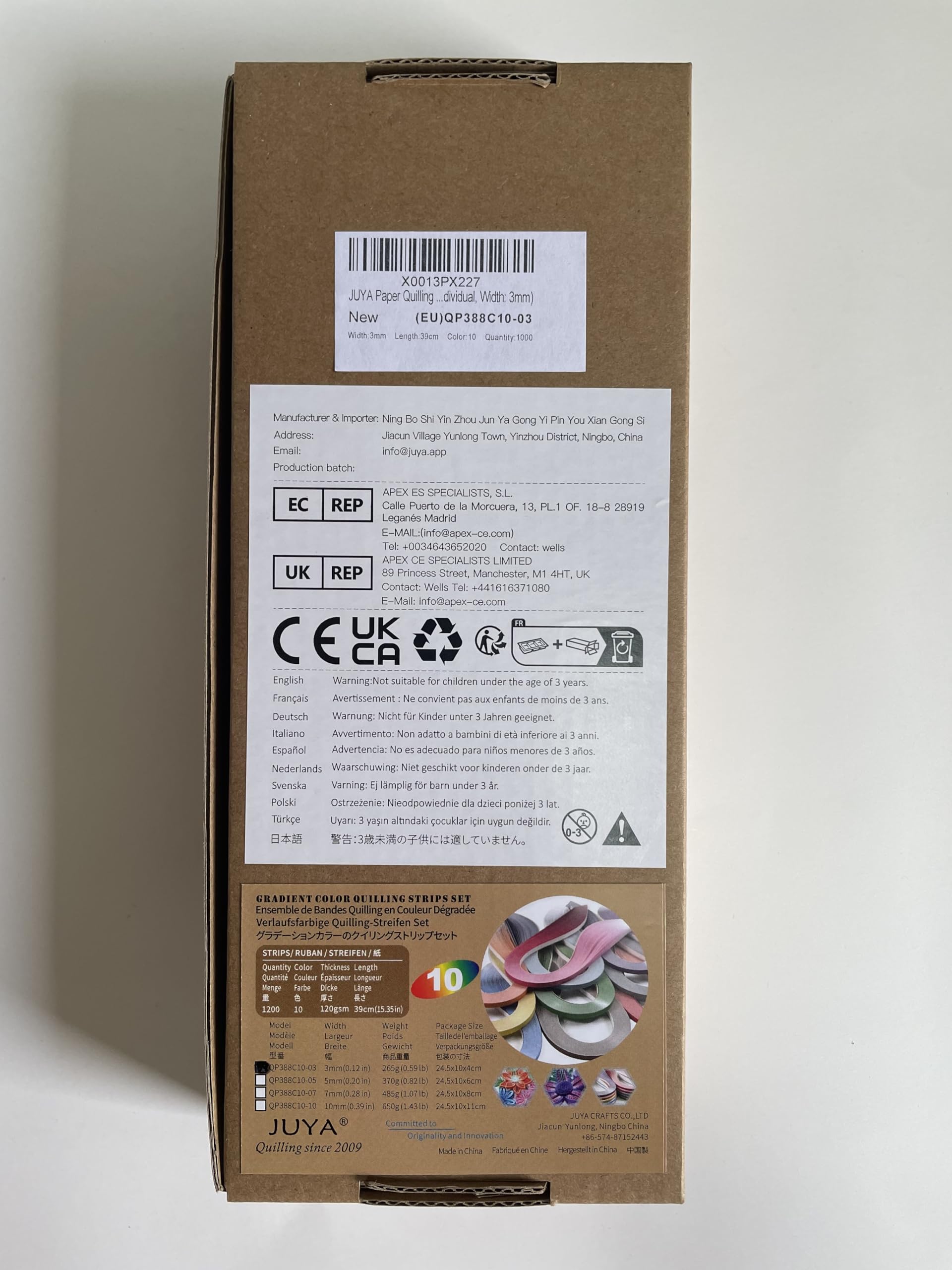 JUYAクイリングキット連続グラデーションカラー1000枚紙10種類長さは390mm 幅3mm