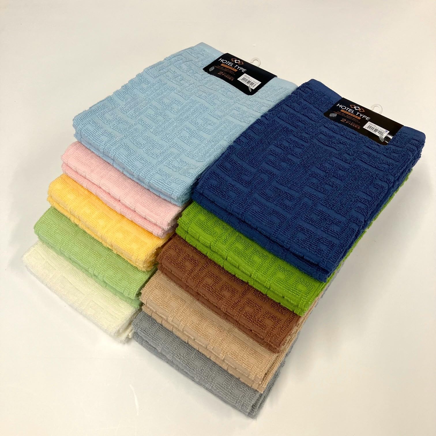【新着特価】フェイスタオル2枚組×2個セット ホテルタイプ バラエティカラー5 34×80cm ブルー FO801401-2