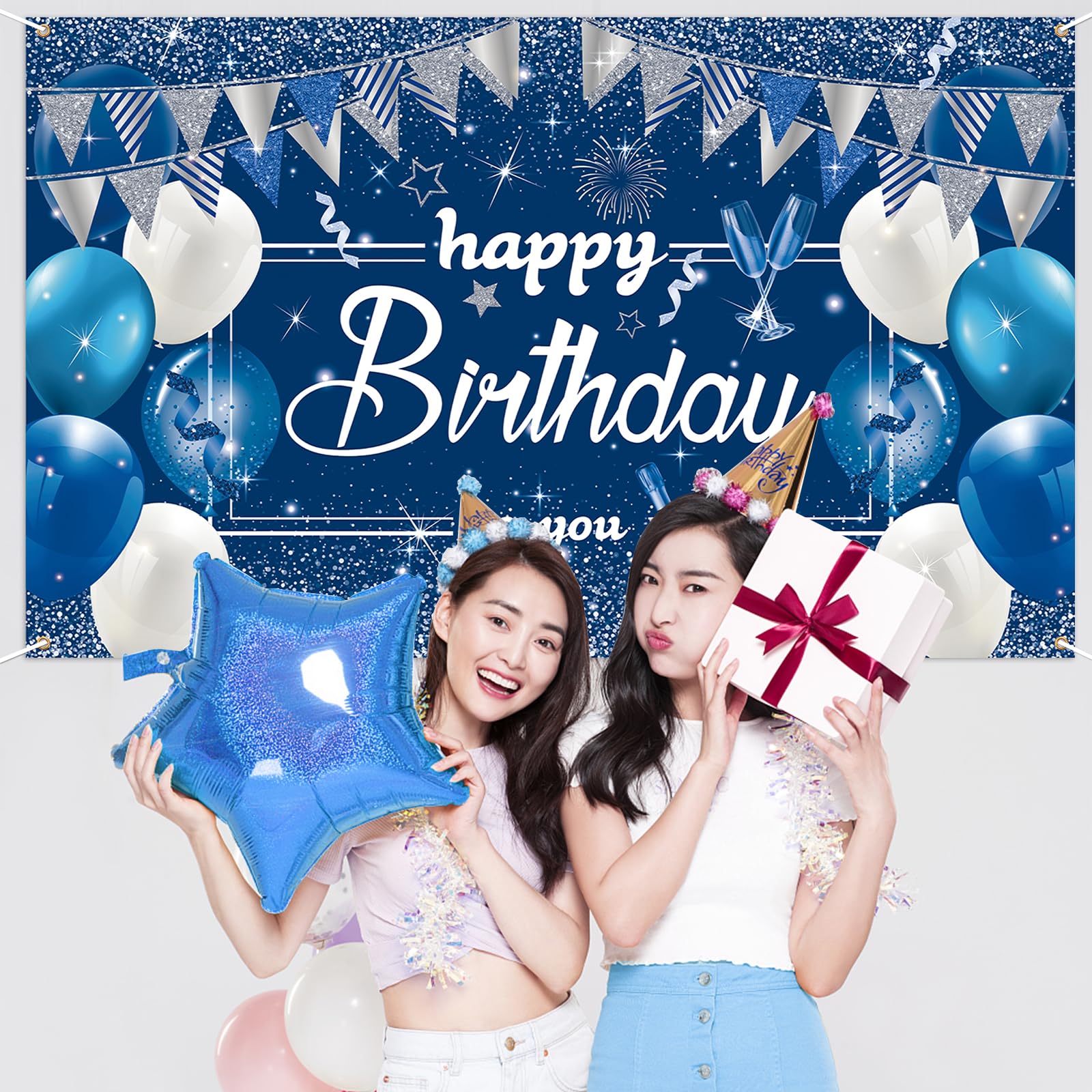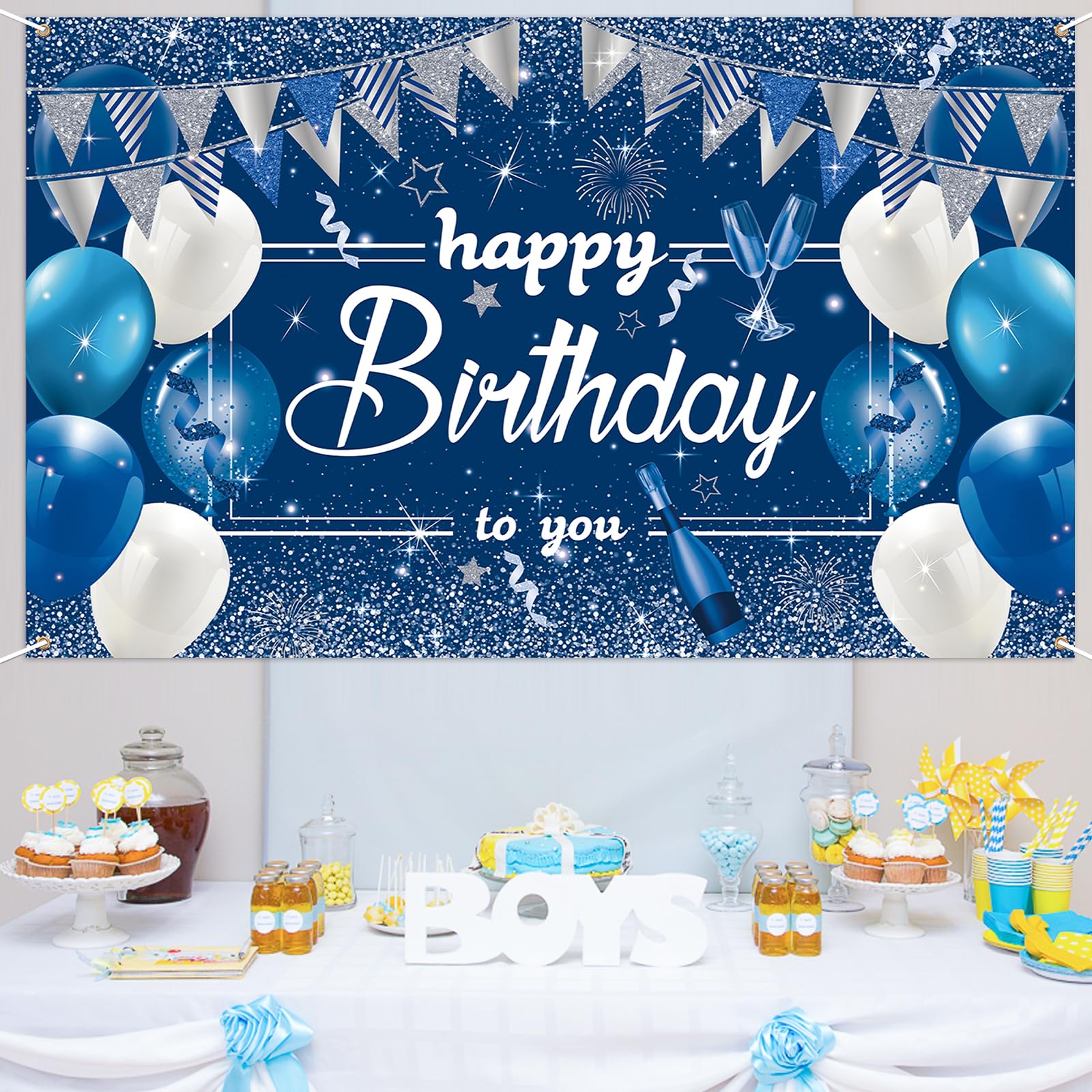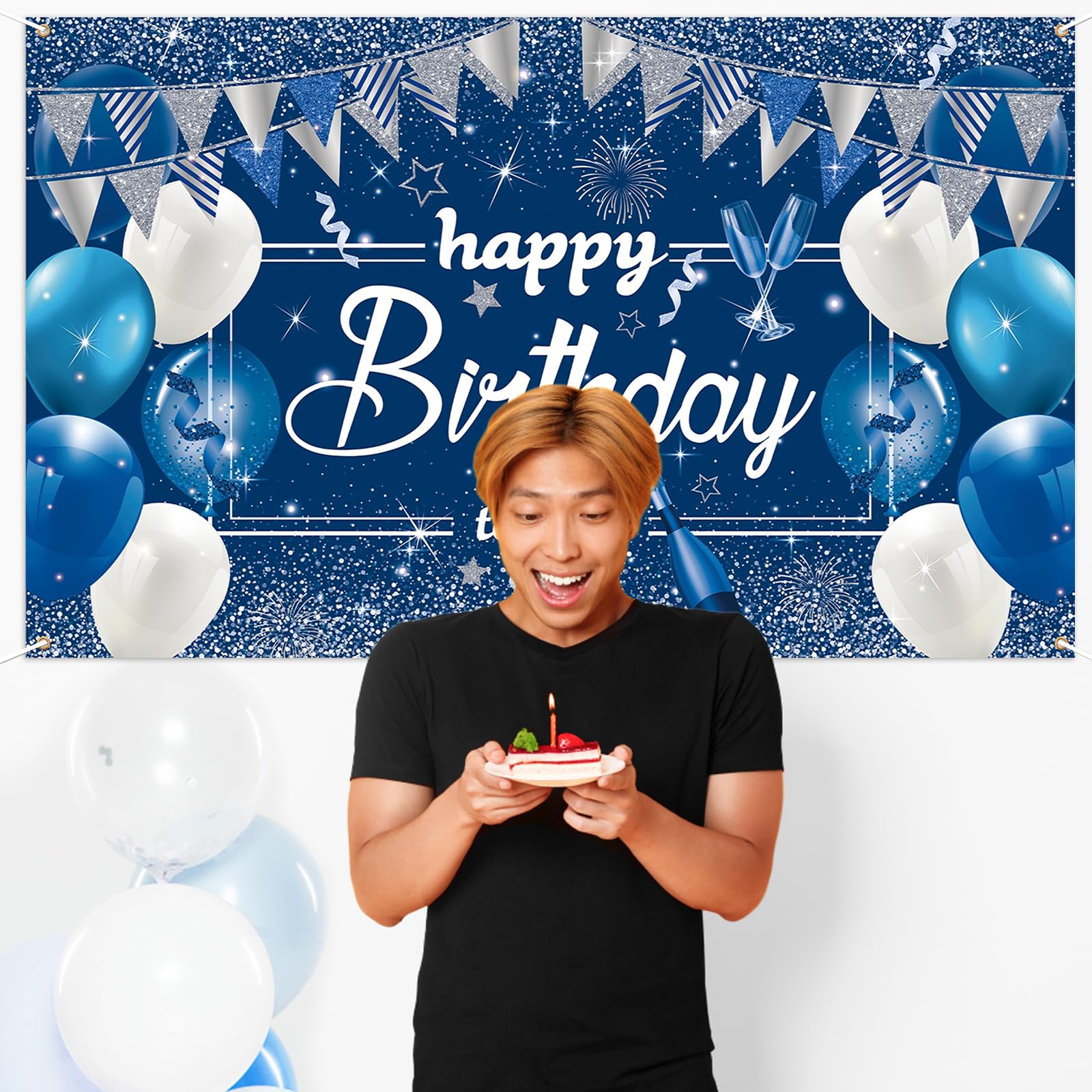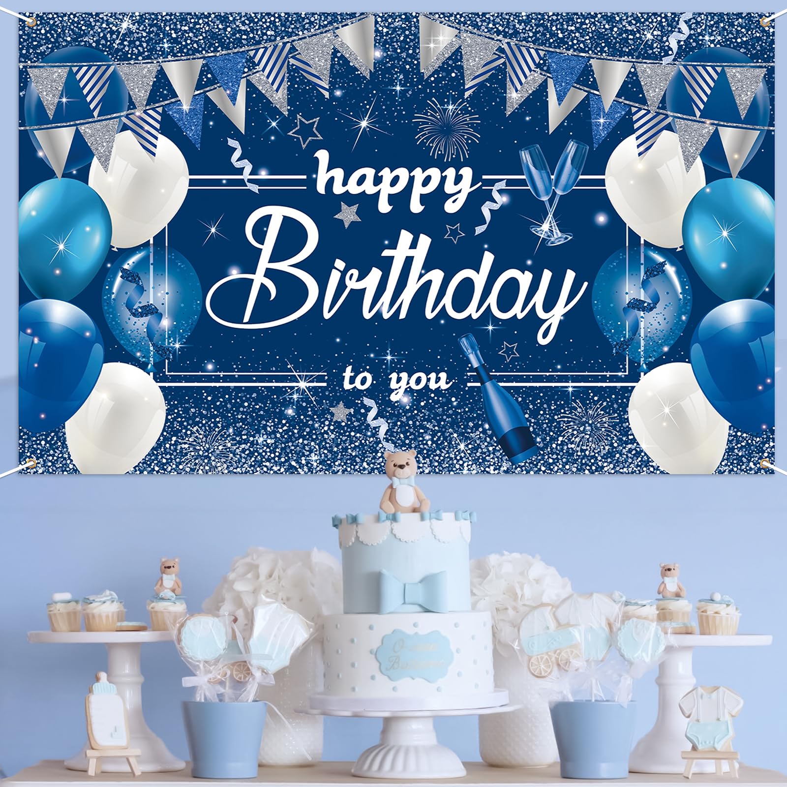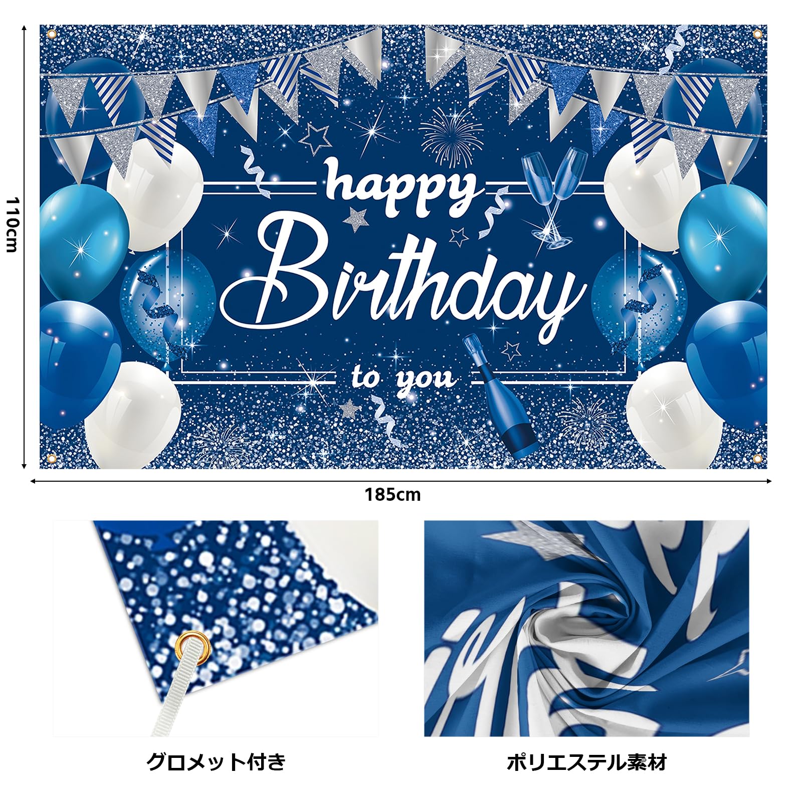 Paready バースデー タペストリー 誕生日 飾り付け 壁掛け 大判 フォトポスター 写真背景 壁飾り Happy Birthday パーティー 飾り おうちスタジオ シンプル おしゃれ 装飾 大人 女の子 男の子 ブルー