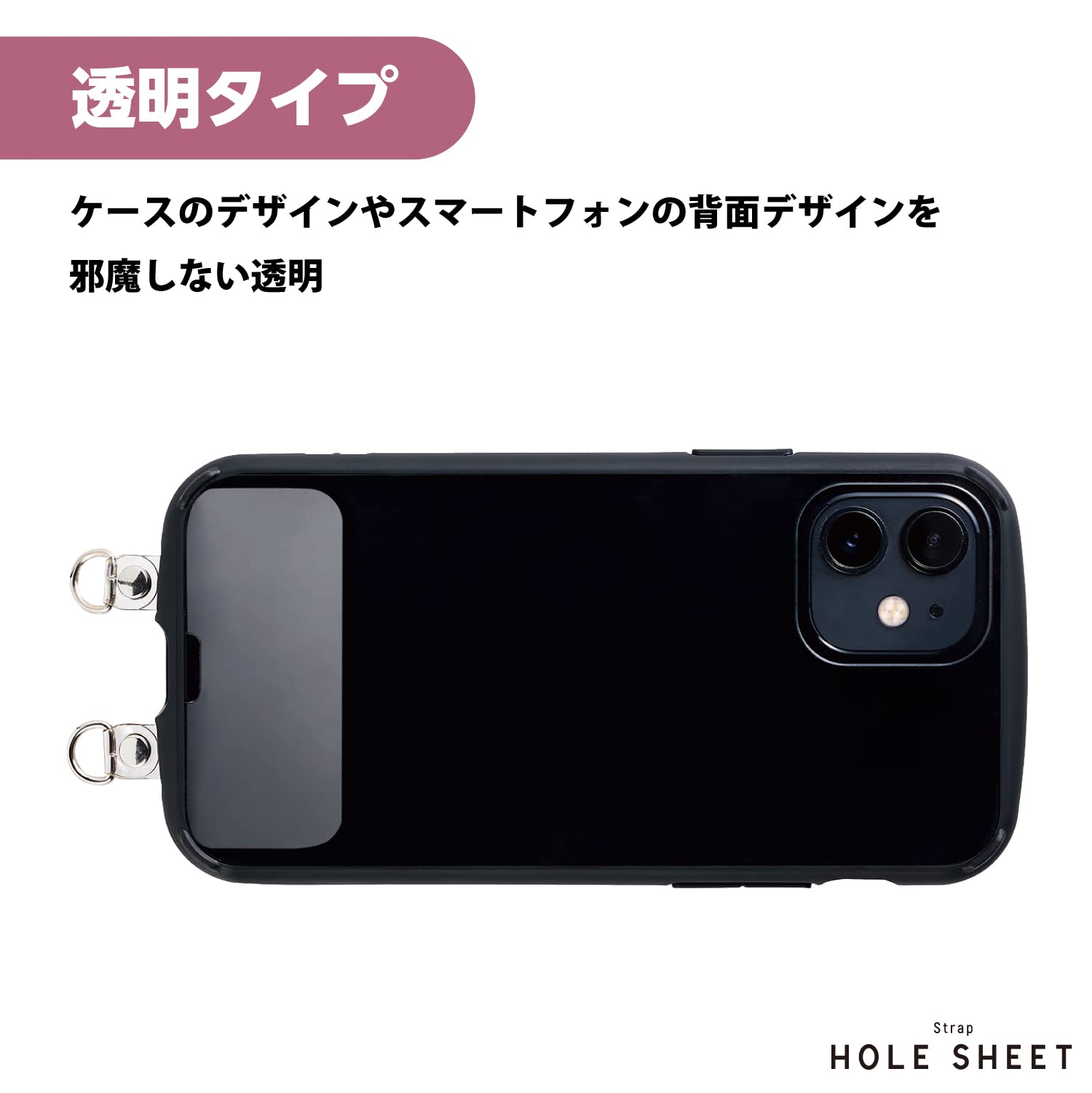 ■スマートフォンとケースの間に挟むだけでストラップホールを追加できる、2口タイプのストラップホールシートです。
