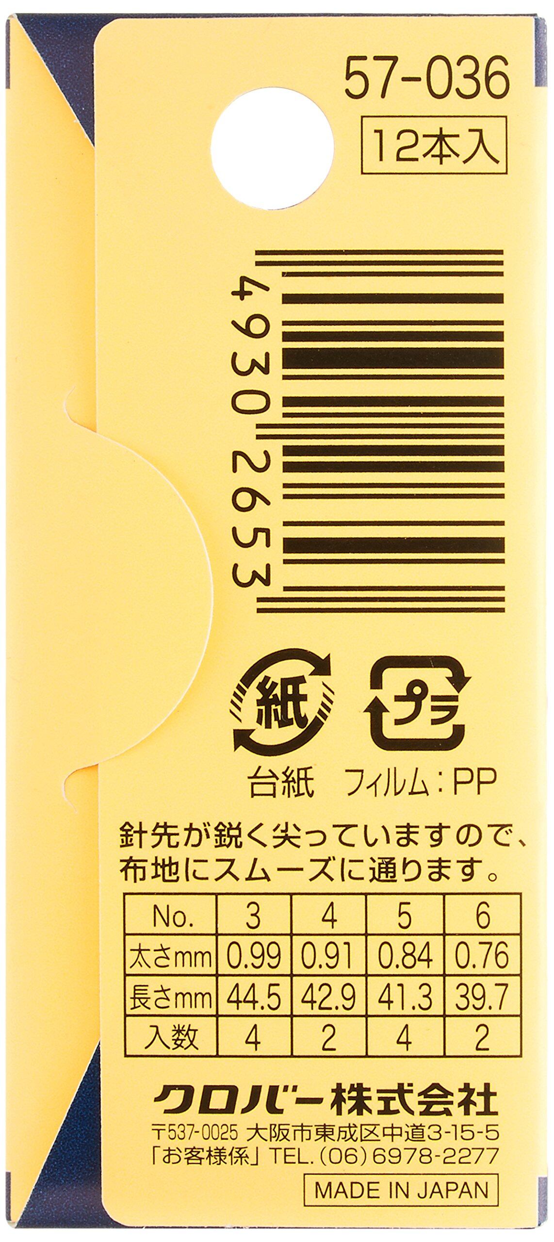 【数量限り】クロバー(Clover) フランス刺しゅう針 取合せ No.3~6 12本入り 57-036