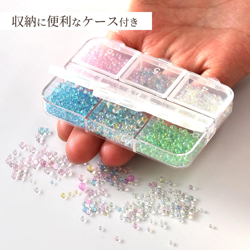 MYmama ガラスオーロラ バブルビーズ 6色セット 収納ケース付き 封入パーツ ビーズ・ストーン クラフト 手芸用品