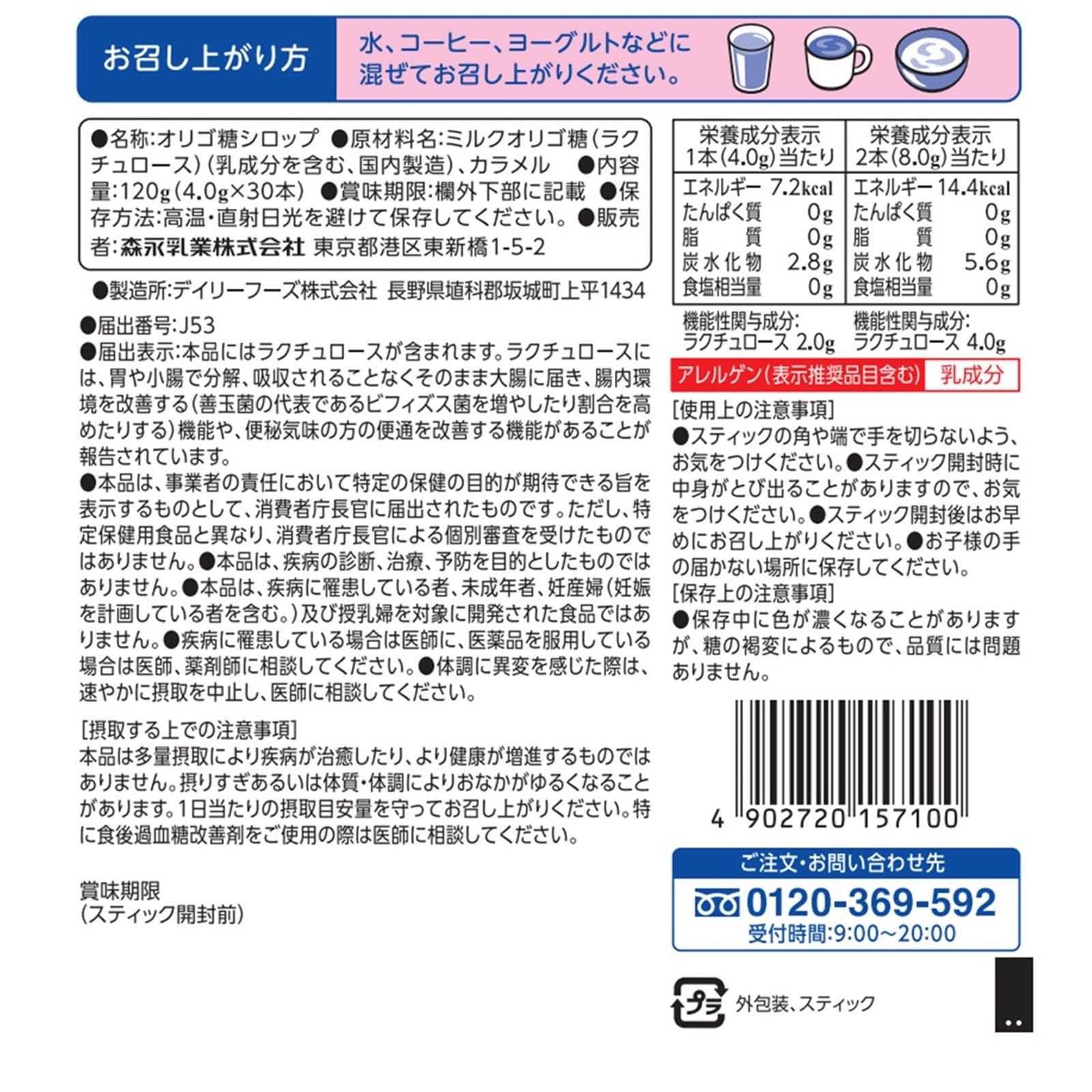 【特価処分】森永乳業 スッキリオリゴ 1袋(30本入り) ラクチュロース ミルクオリゴ糖 シロップ 腸活 ビフィズス菌 オリゴ糖 善玉菌 morinaga 健康 おなか サプリ
