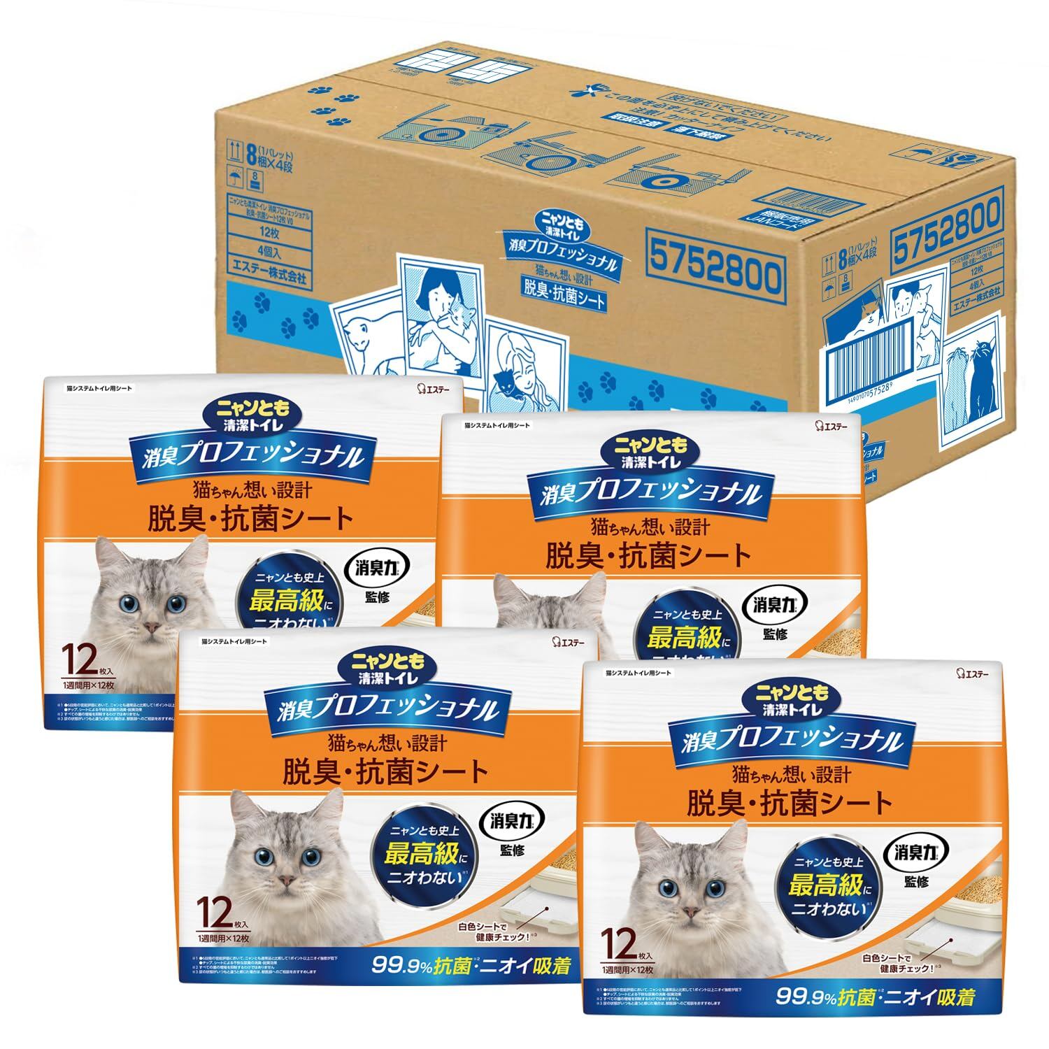 ニャンとも清潔トイレ [消臭力 監修 ニオイブロック成分配合] 消臭プロフェッショナル 脱臭・抗菌シート 12枚×4 [猫用システムトイレシート] システムトイレ 猫用 トイレシート (ケース販売)