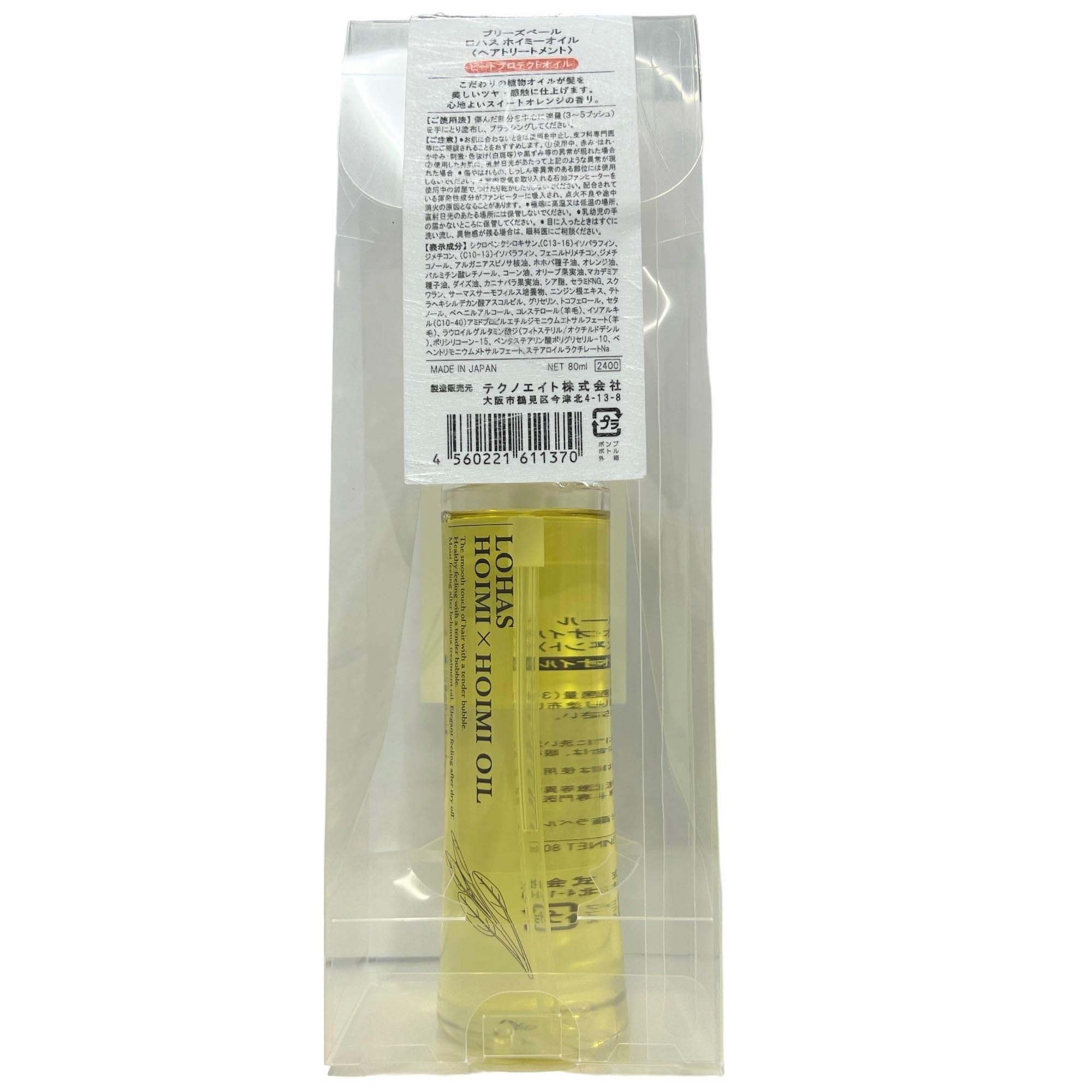 ロハス ホイミー×ホイミー オイル 80ml 商品サイズ (幅×奥行×高さ) :75×50×210 内容量:80ml ごわつきやスタイリングしにくいなどの髪の悩みに髪本来のツヤ感触を高めるアウトバスタイプのヘアトリートメント。 こだわりの数種類の植物オイルが髪をしなやかにそして驚くようなツヤ感に仕上げます。 オイルベースなのにベタつかず髪にサラッとなじみます。