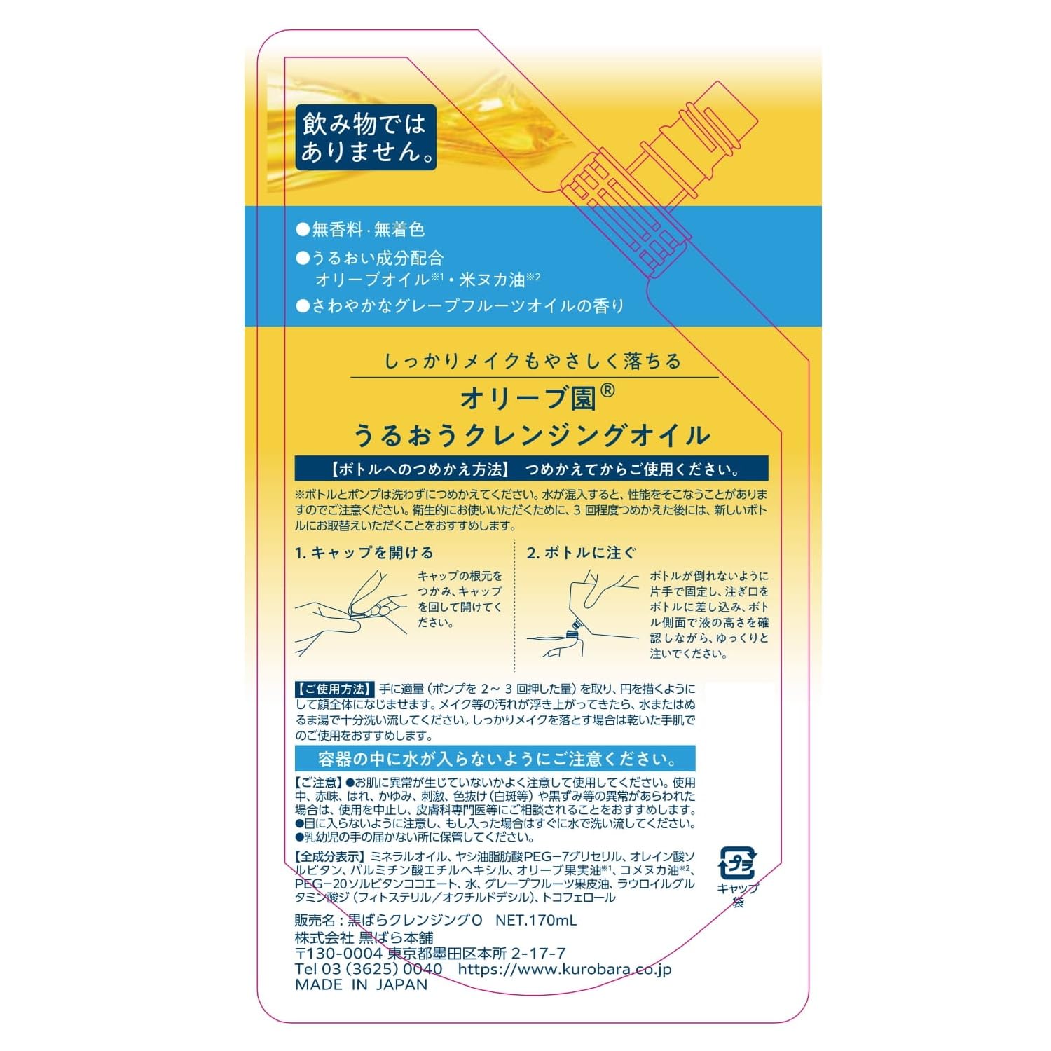 黒ばら本舗 オリーブ園 うるおうクレンジングオイルつめかえ 170ml メイク落とし 洗顔 アイメイク お風呂で使える