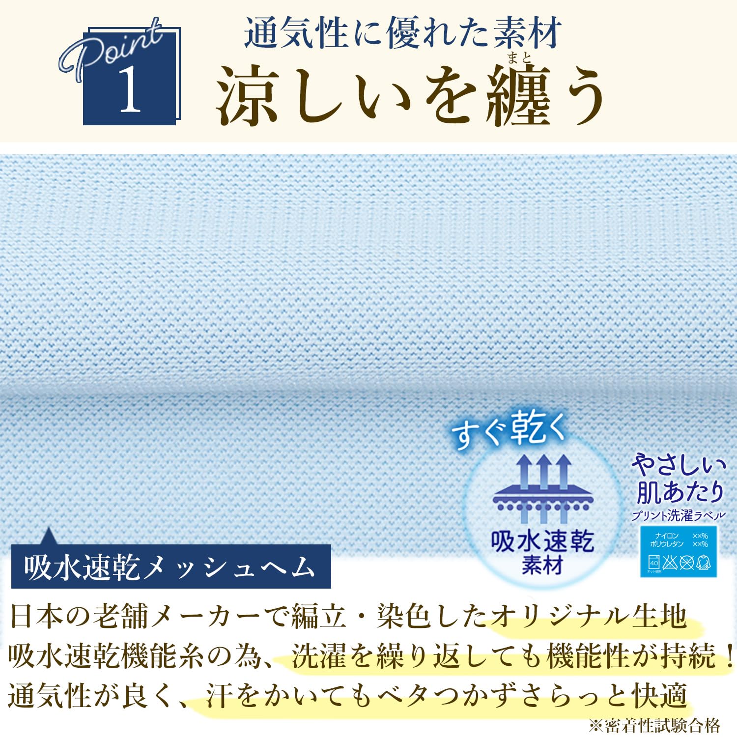 吸水速乾性にすぐれ、とても快適な着心地